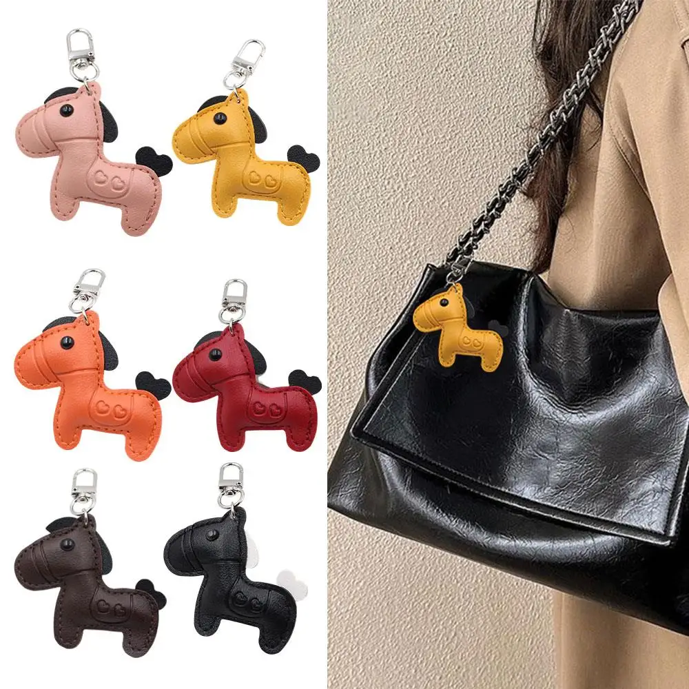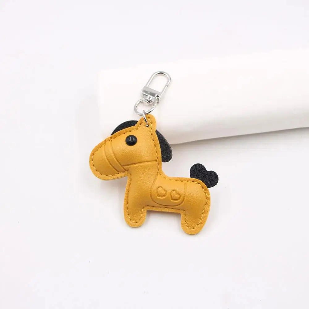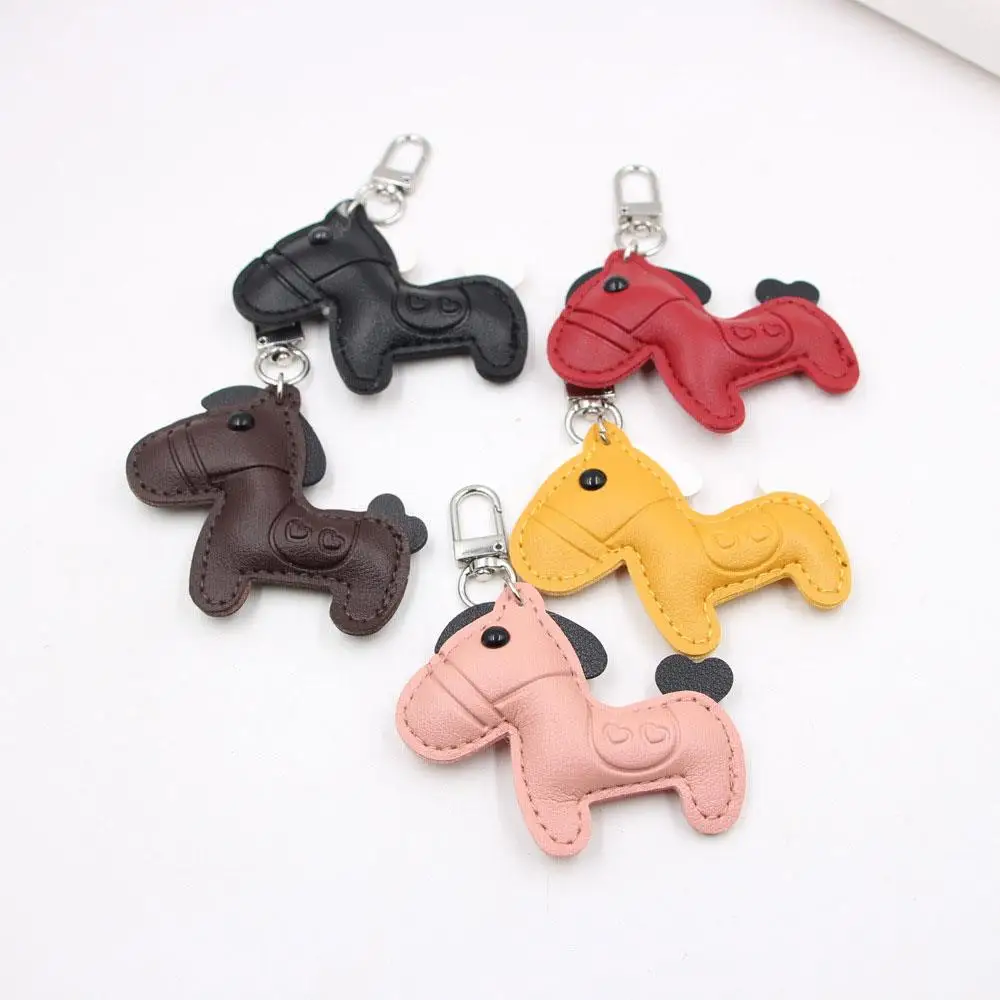 Fashion Women Men's Cartoon PU Horse Keychain Car Keyring Bag Pendant Charm Leather Animal Keychains Sister Bestie Friend Gift