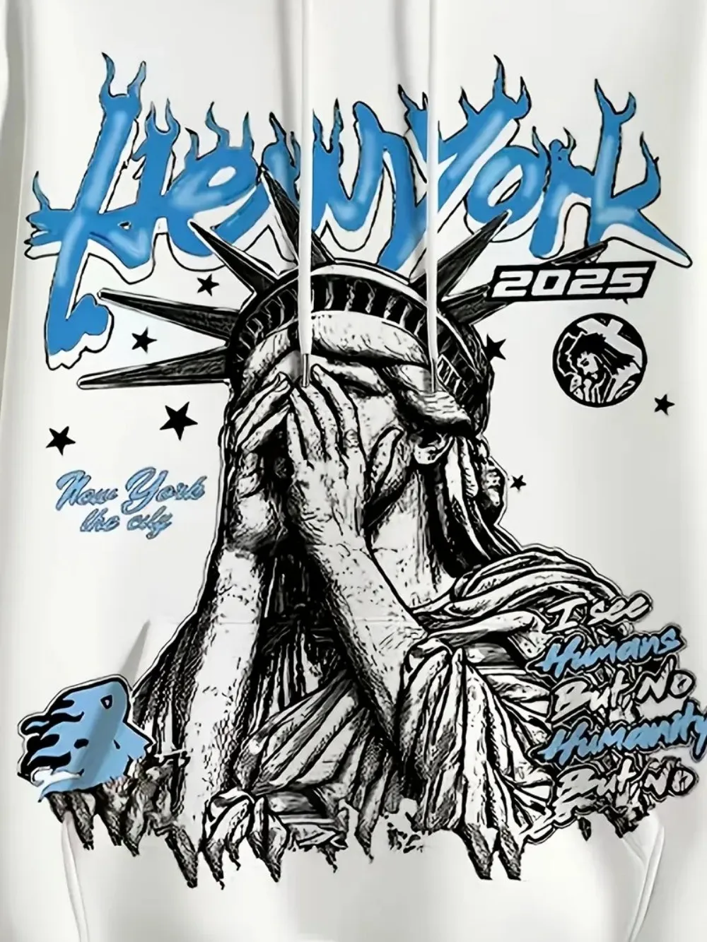Fashionable new men's autumn Statue of Liberty print soft and comfortable hooded sweatshirt outdoor street style top