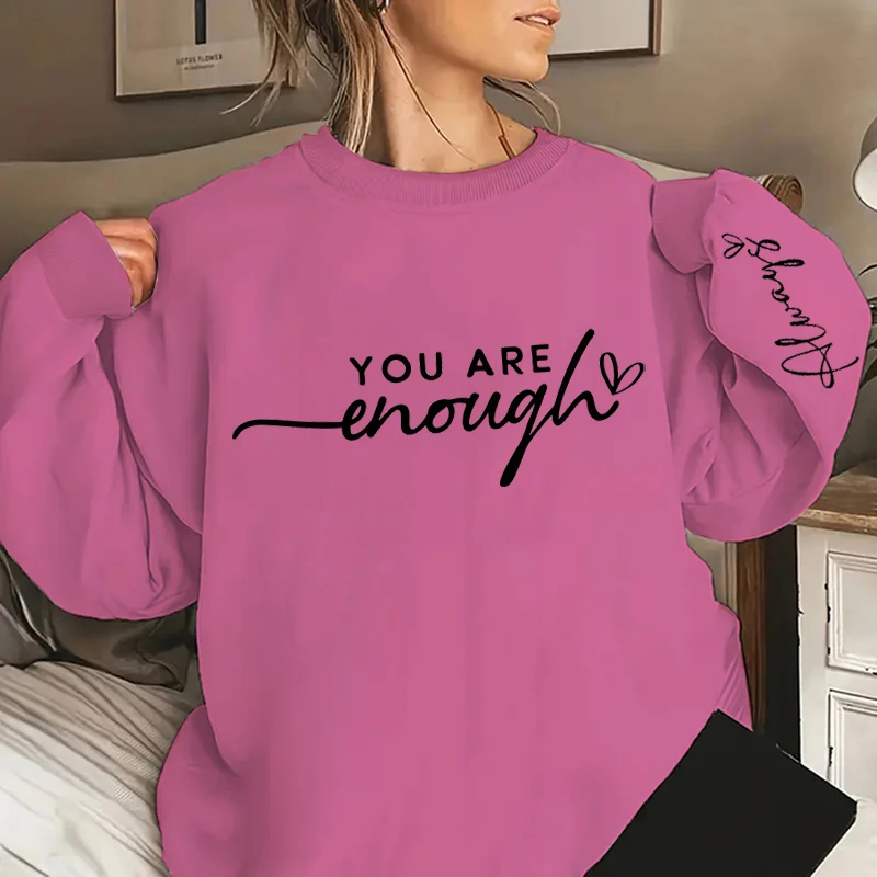 Funny You Are Enough Always Letter Print Sweatshirts For Women Crew Neck Long Sleeves Ladies Casual Pullovers Plus Size