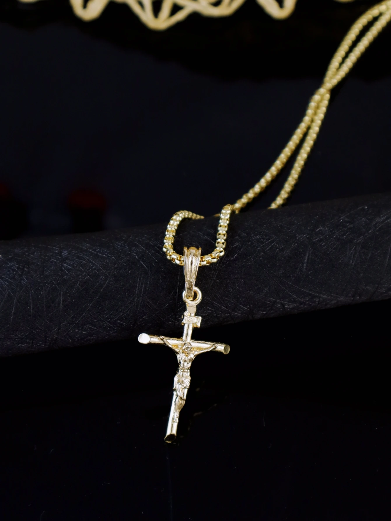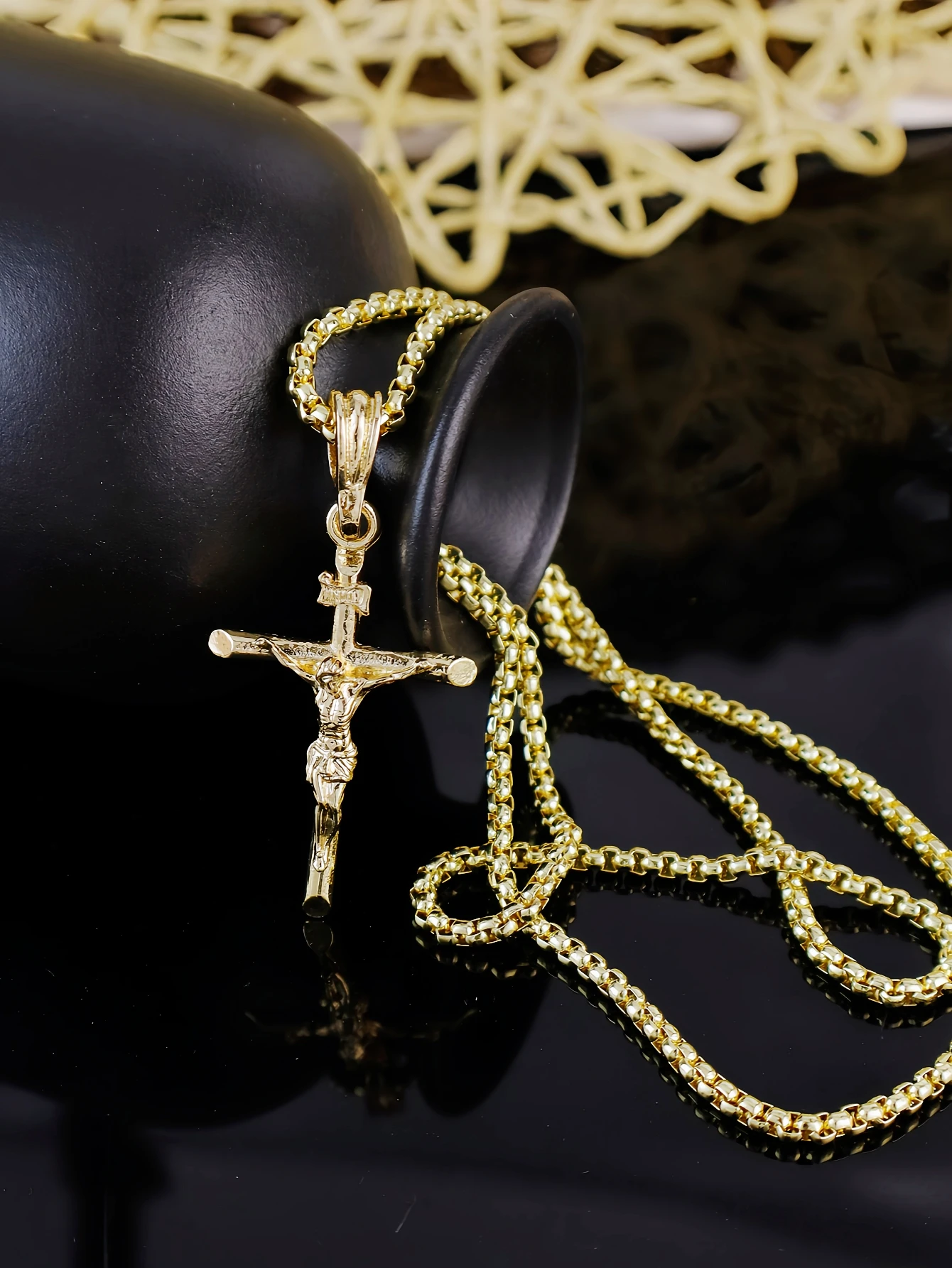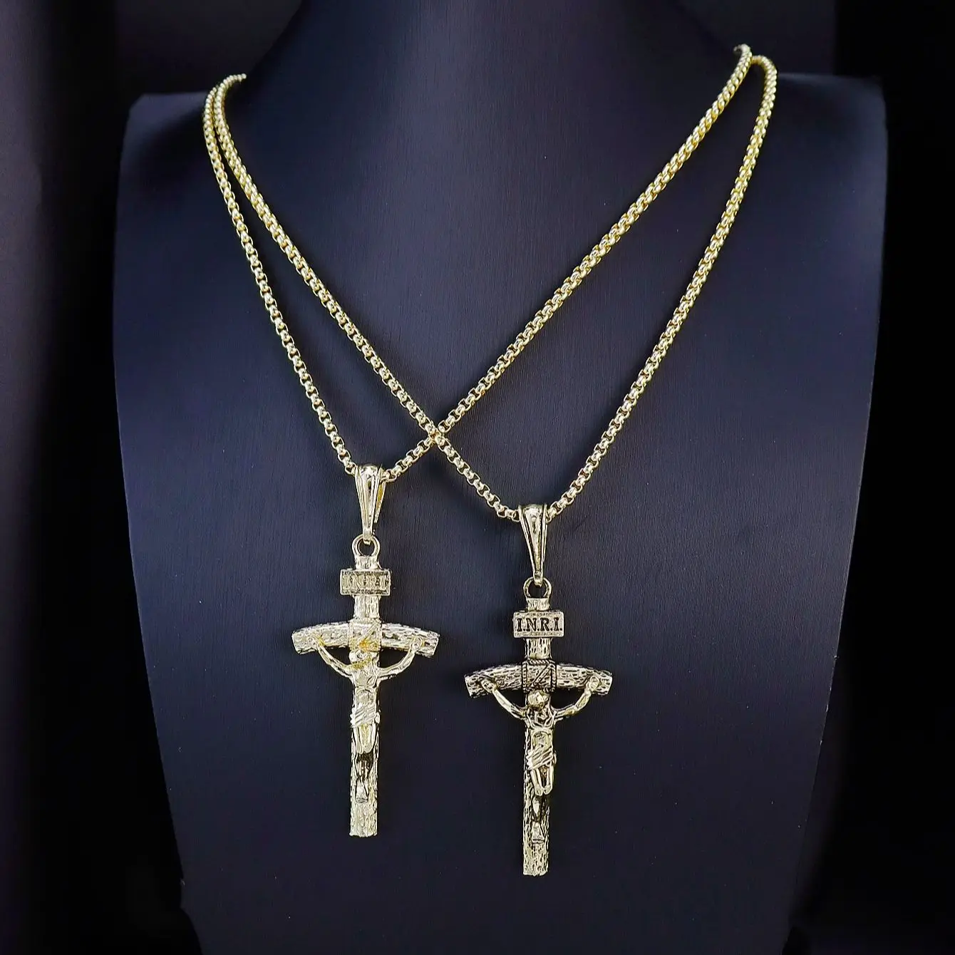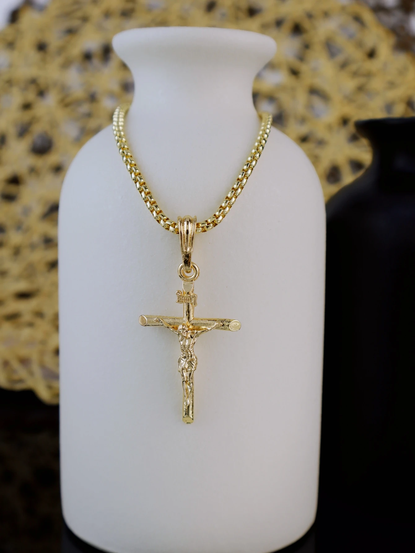 Gold cross men's and womenJesusreligious pendants/charms - Figaro style chain san judas necklace