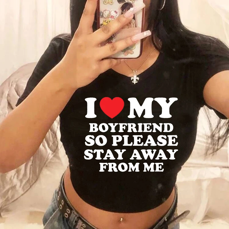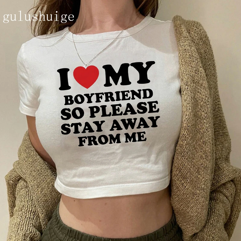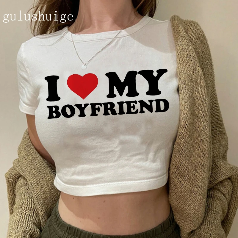 Gothic Crop Top I Love My Boyfriend Cropped T Shirt Female Fashion Clothes Comfortable Short T-Shirt Casual Soft T-Shirts