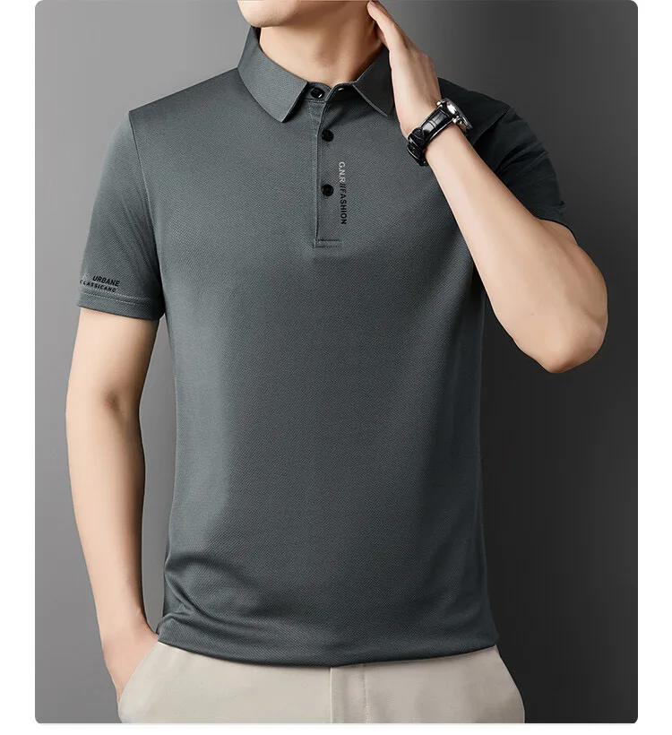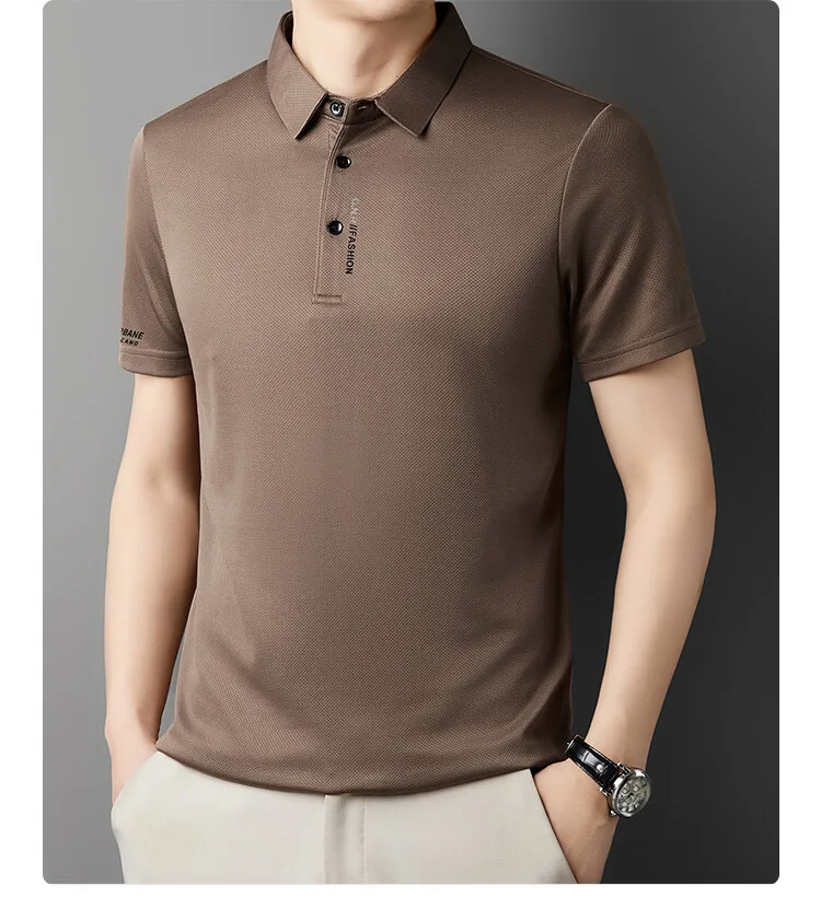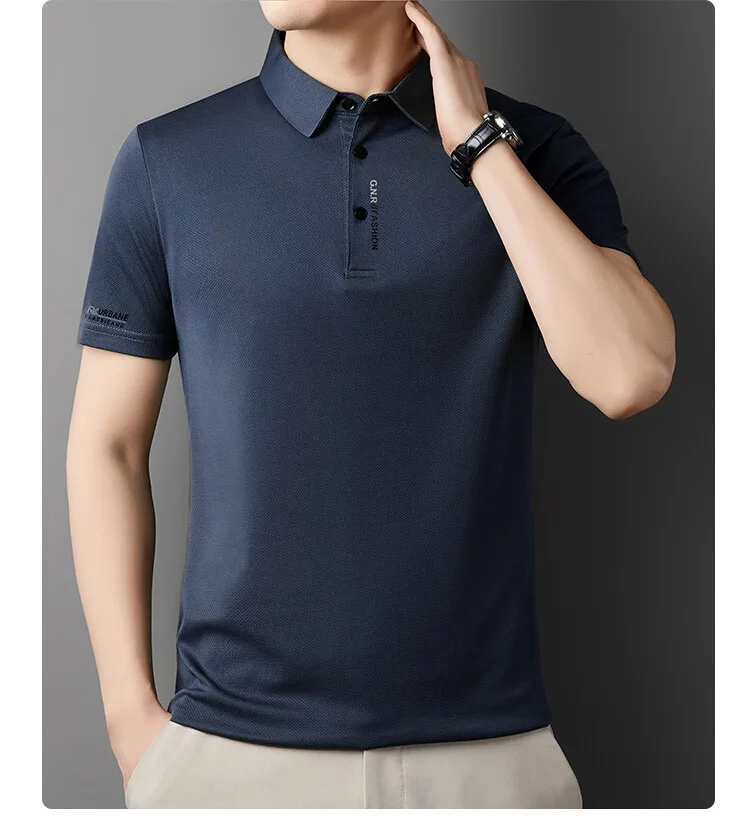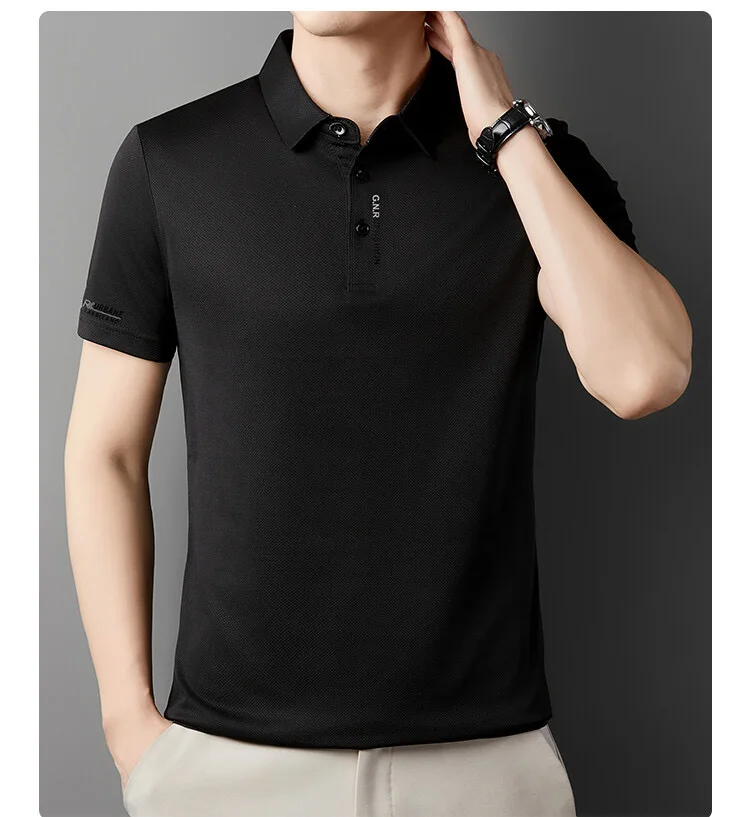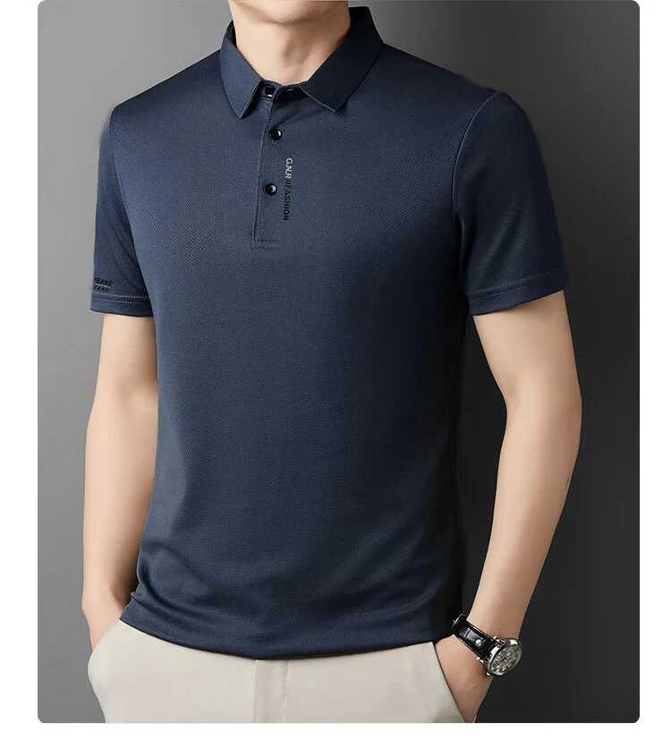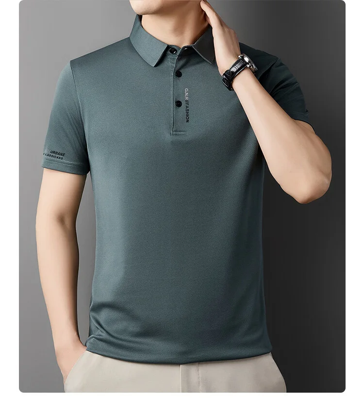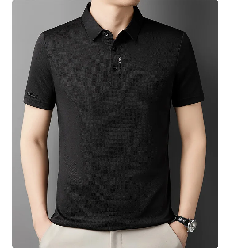 High end brand ice silk short sleeve polo shirt men's summer new fashionable printed casual T-shirt comfortable cool golf top