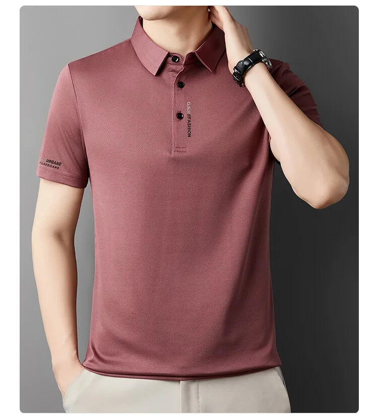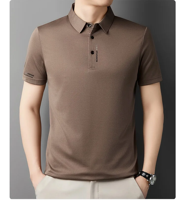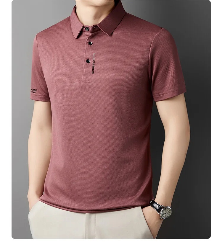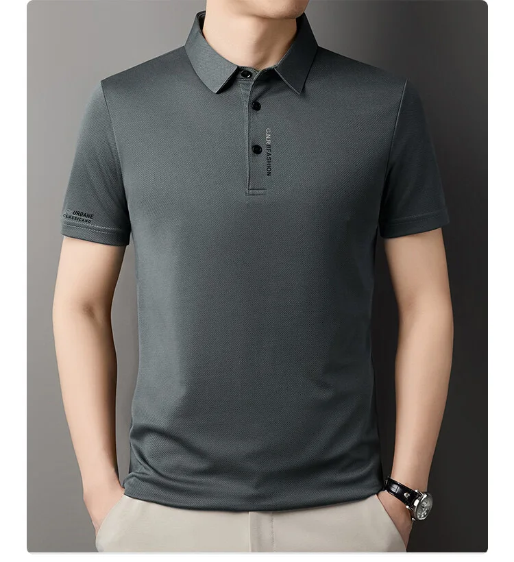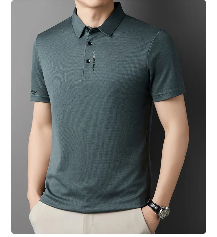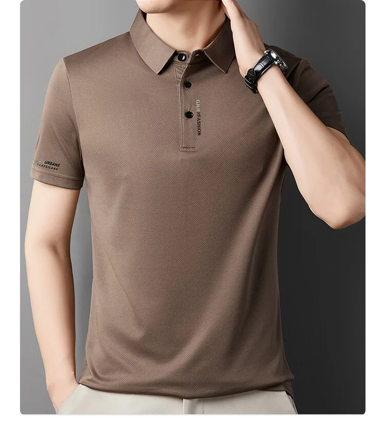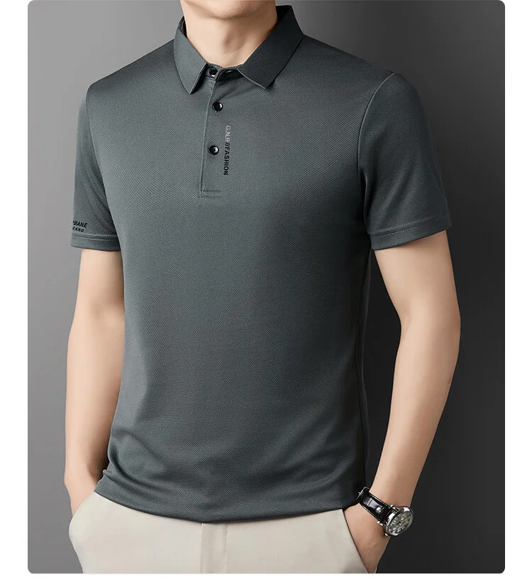 High end brand ice silk short sleeve polo shirt men's summer new fashionable printed casual T-shirt comfortable cool golf top