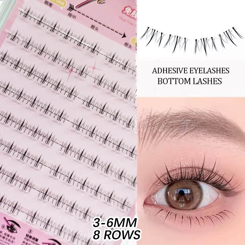 HISYI Self-Adhesive False Eyelashes 8 Rows - Glue-Free, Natural Look, Reusable & Easy Apply for Daily/Party Makeup (8-Pack)