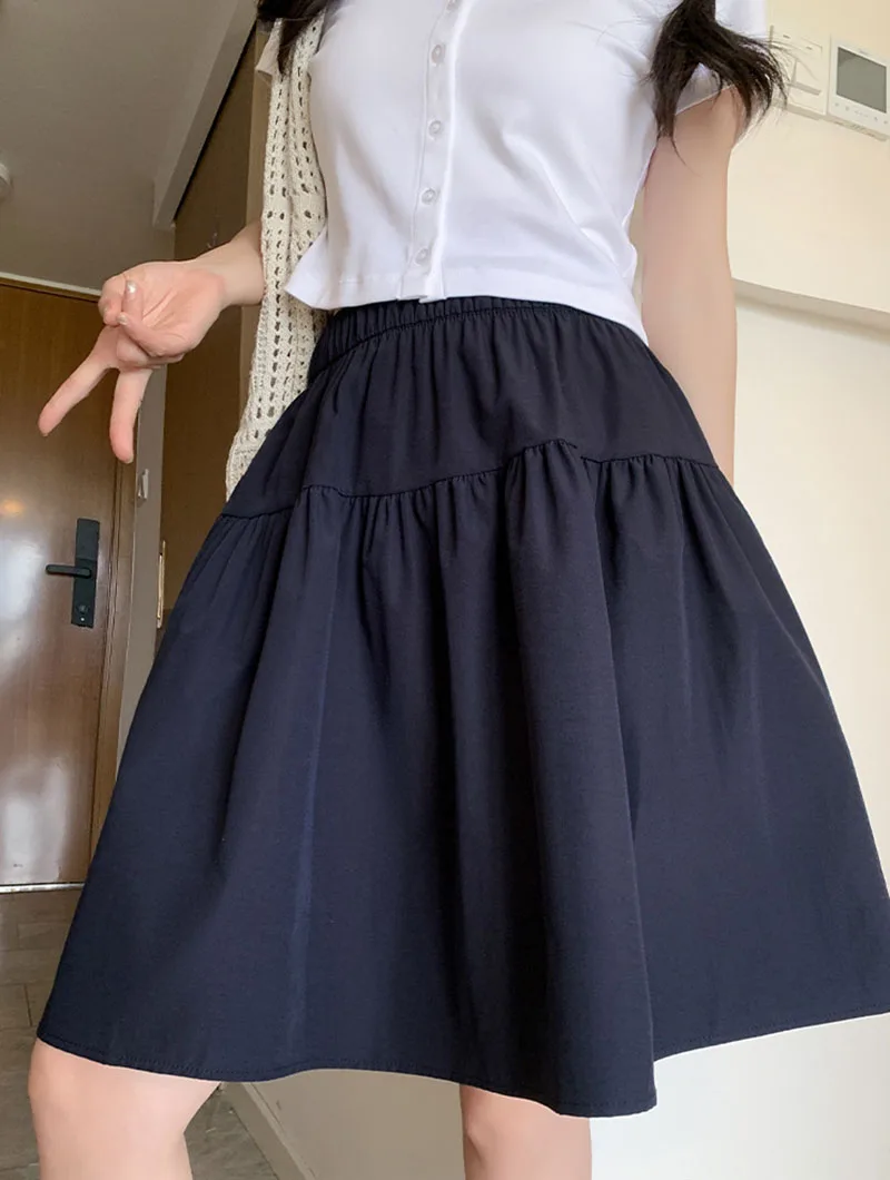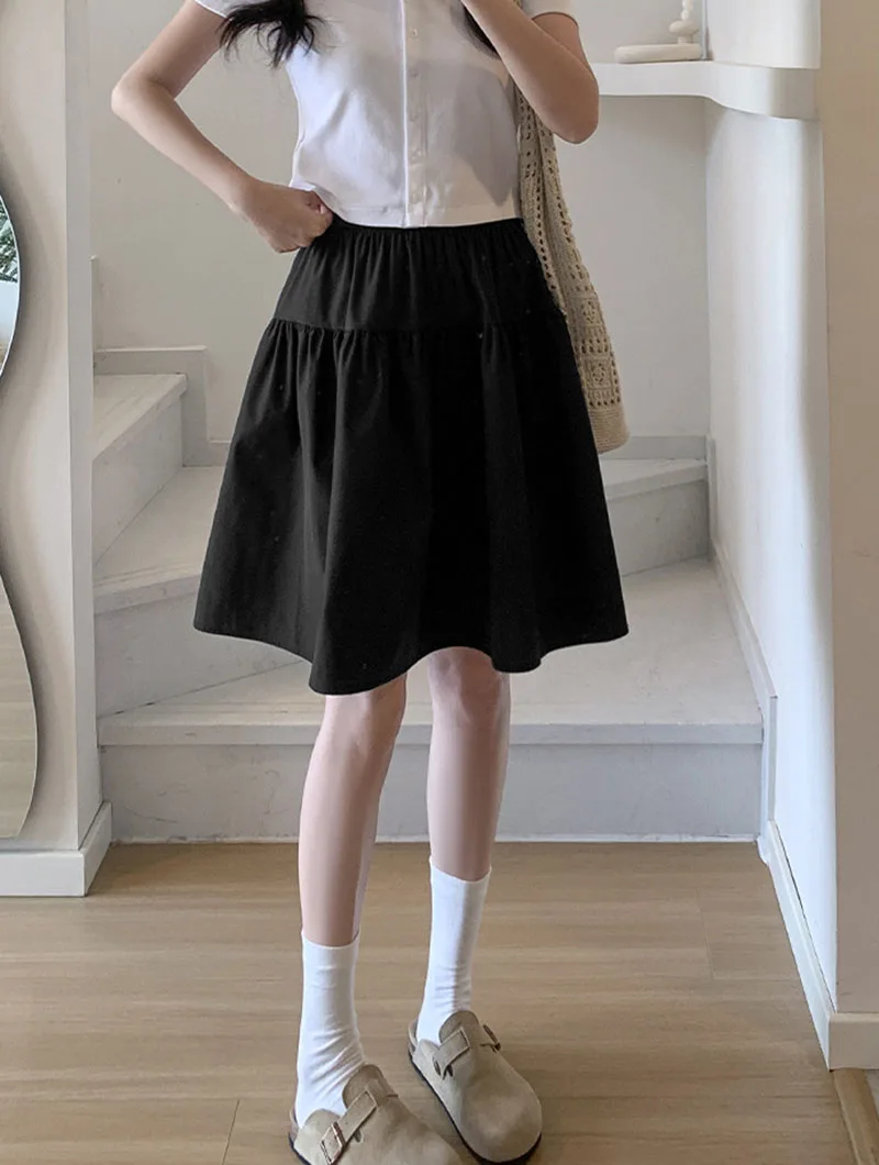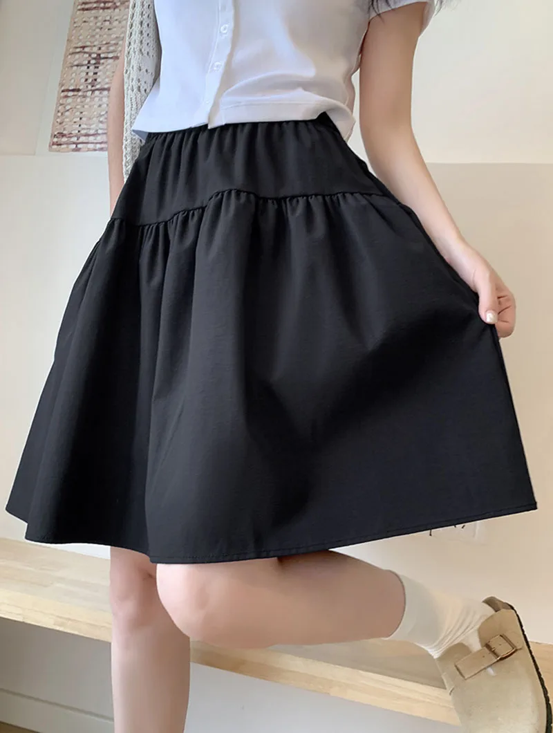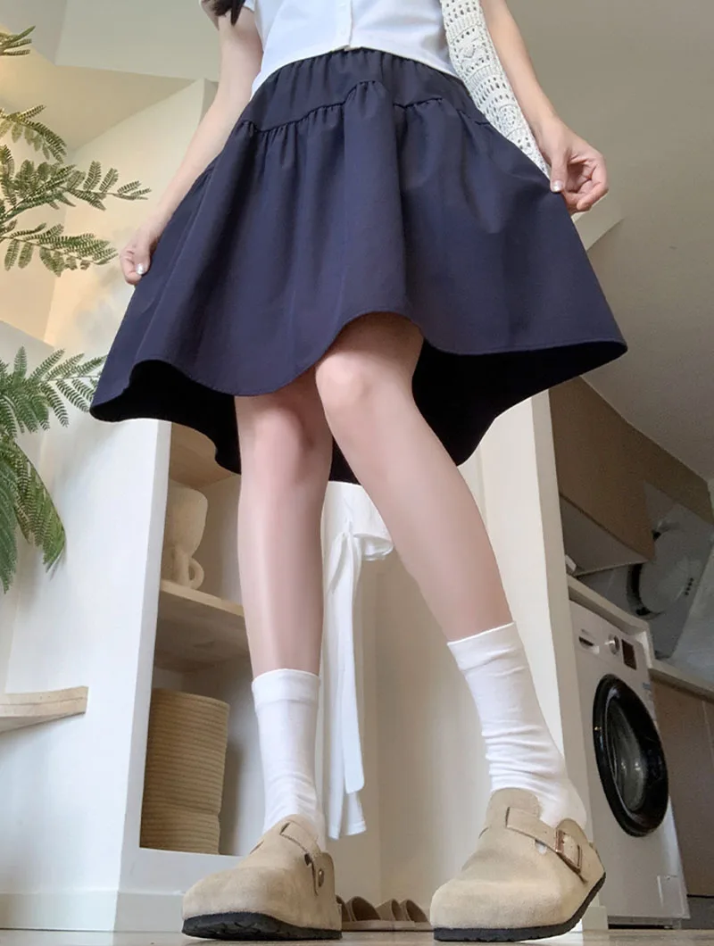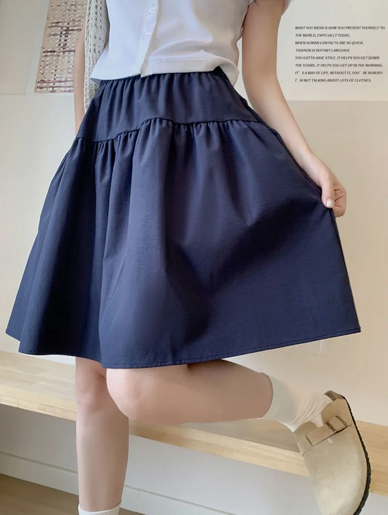 Japanese Style Loose Short Skirt Women College Style Elastic Waist with Pockets Student Skirts Girl All-Match Casual Solid Skirt