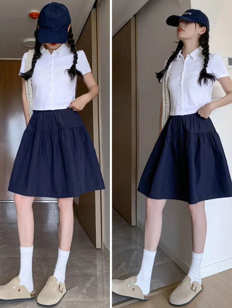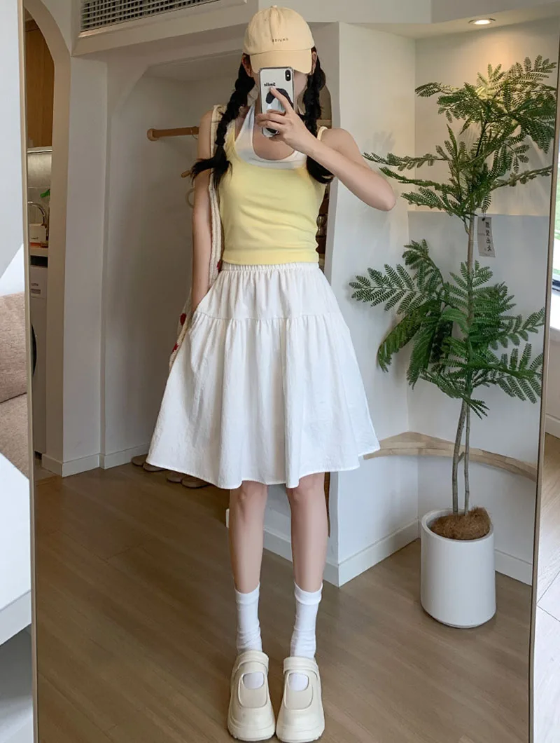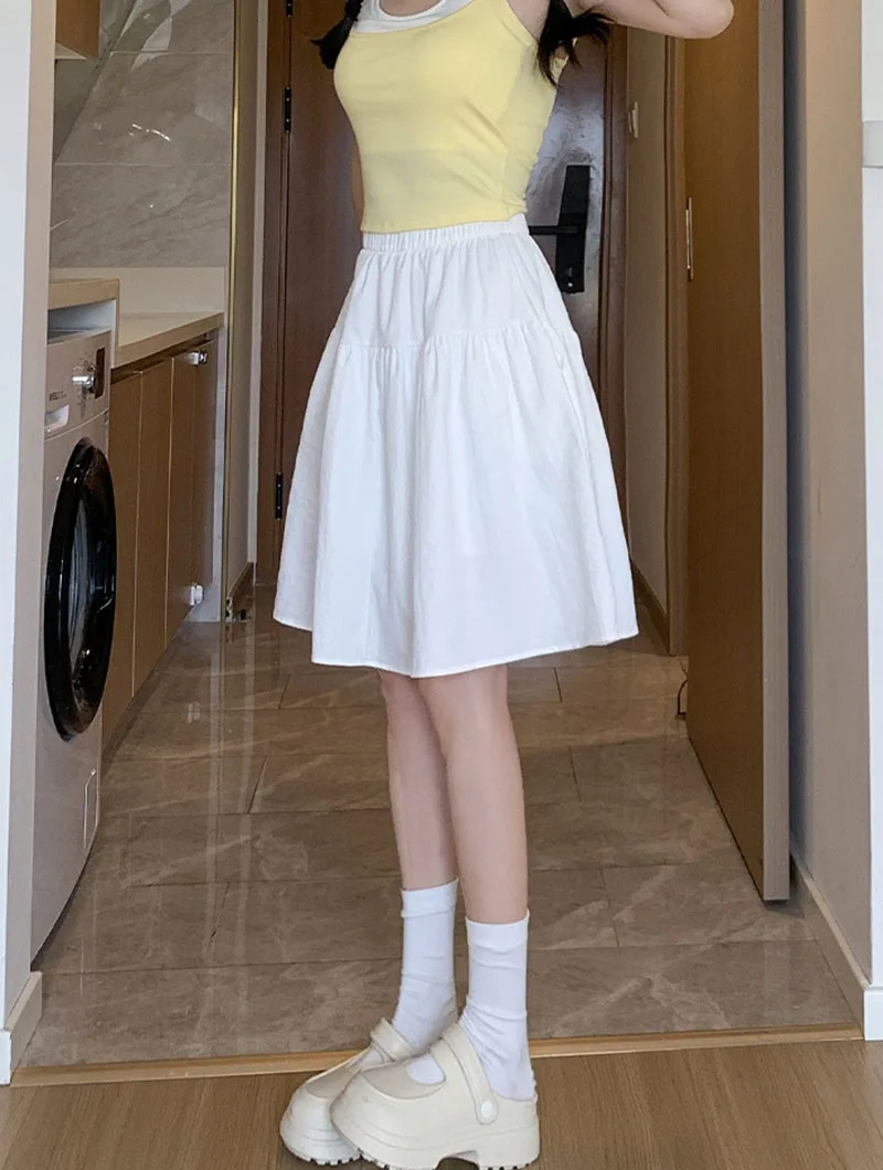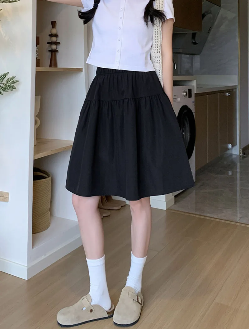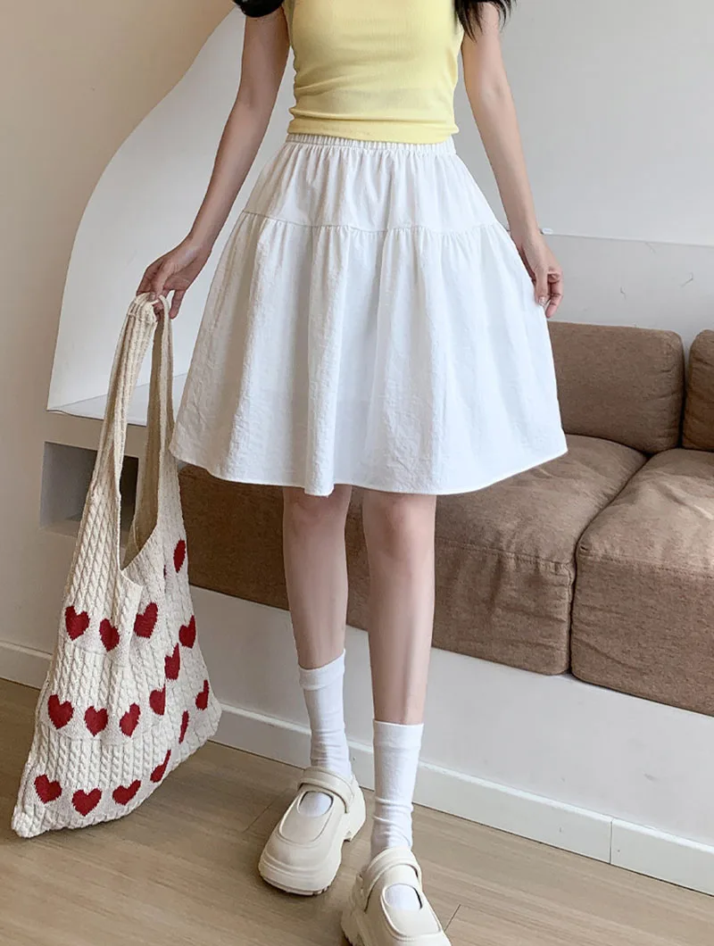 Japanese Style Loose Short Skirt Women College Style Elastic Waist with Pockets Student Skirts Girl All-Match Casual Solid Skirt