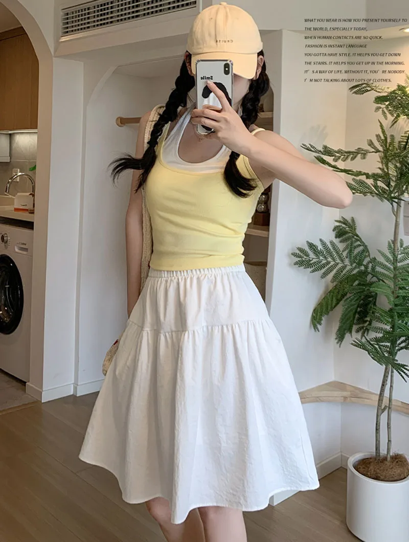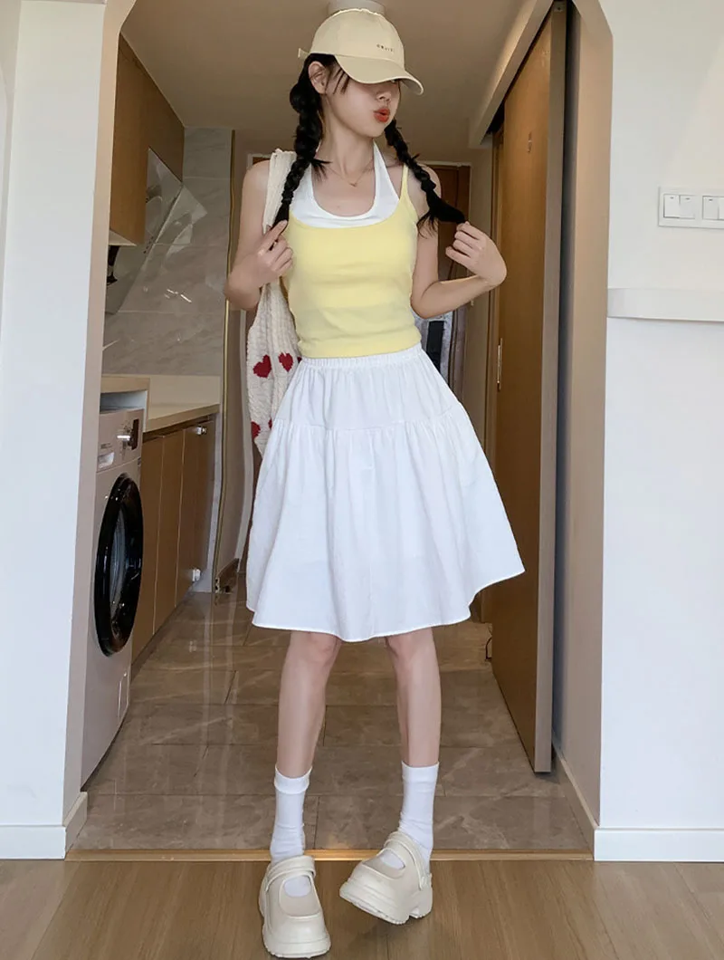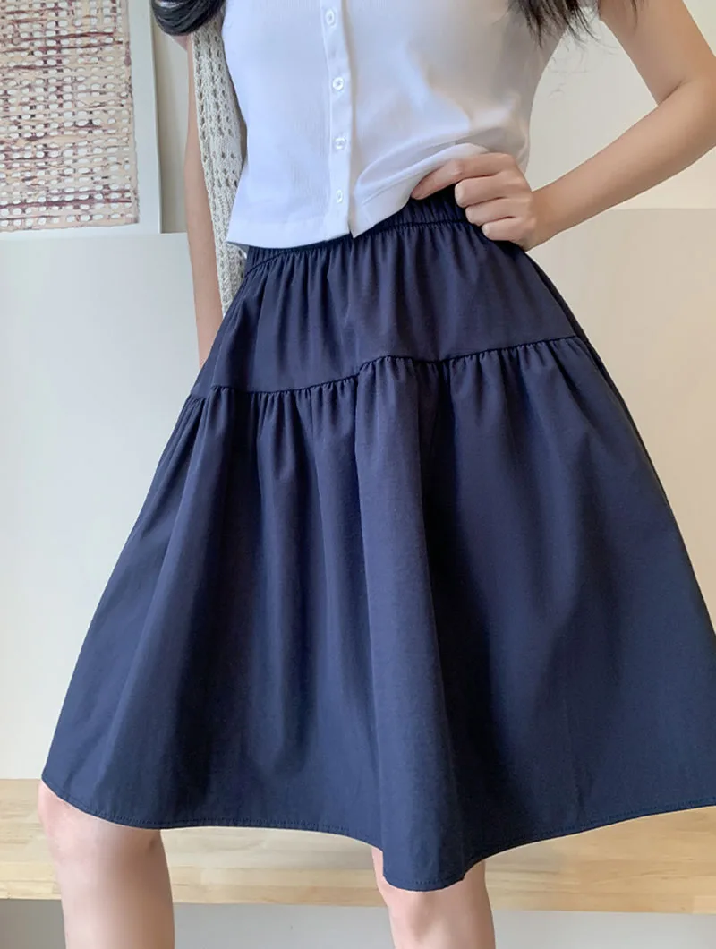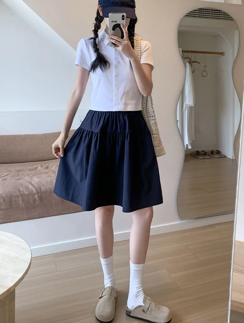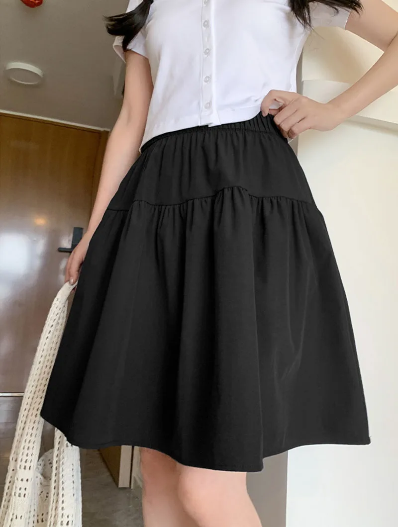 Japanese Style Loose Short Skirt Women College Style Elastic Waist with Pockets Student Skirts Girl All-Match Casual Solid Skirt