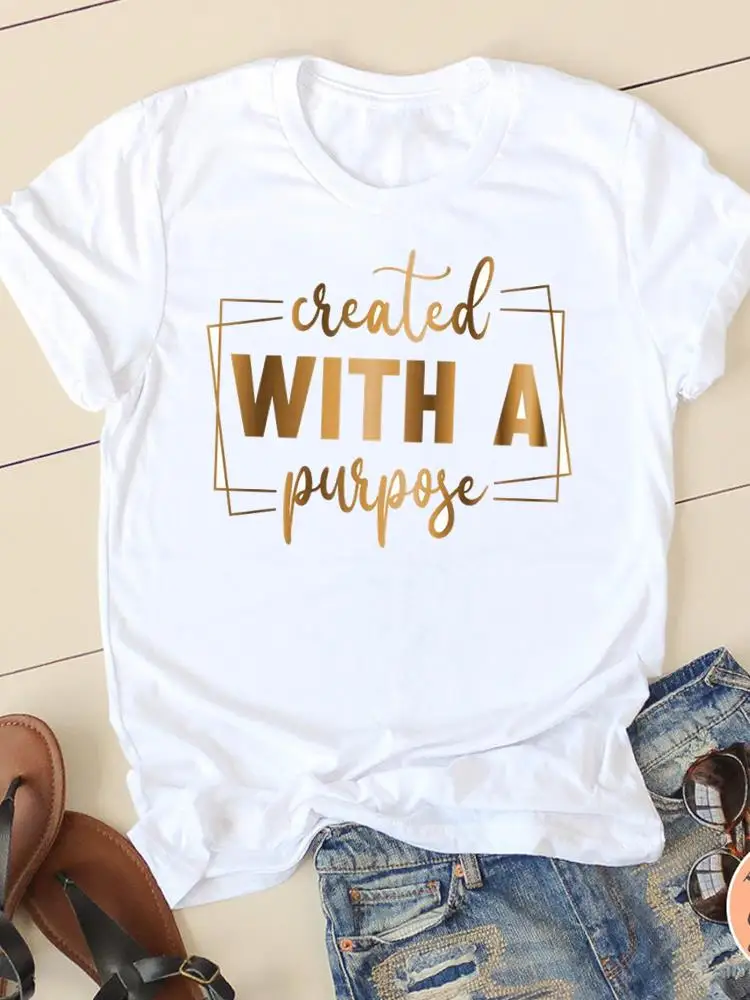 Letter Style Cute 90s Sweet Short Sleeve Fashion Women Print T Faith Clothing Casual Clothes Female T-shirts Ladies Graphic Tee