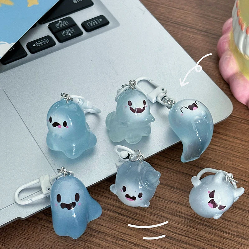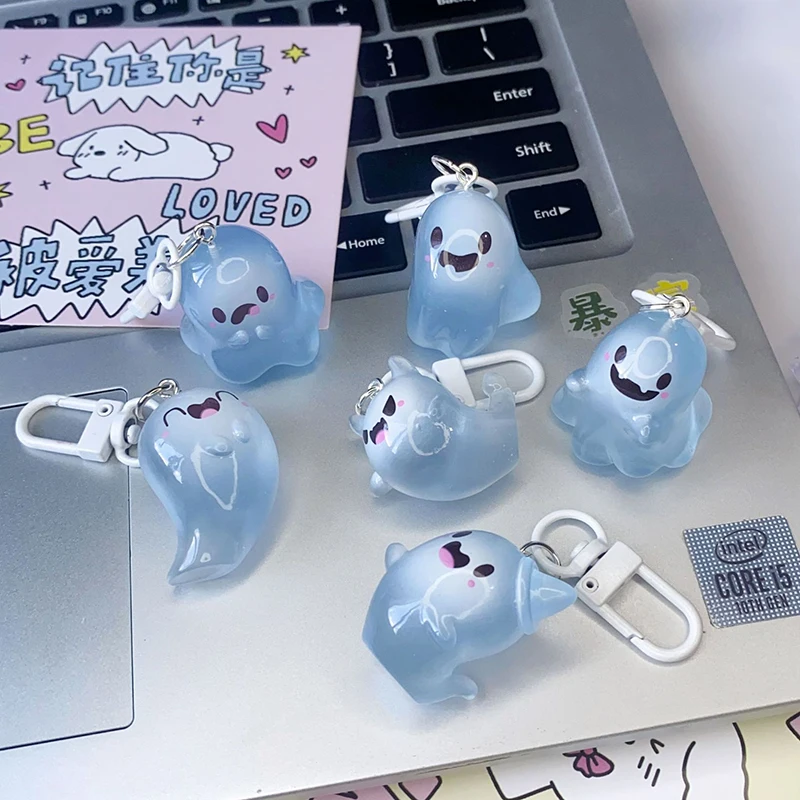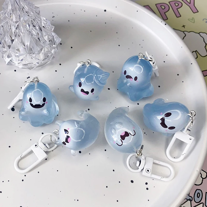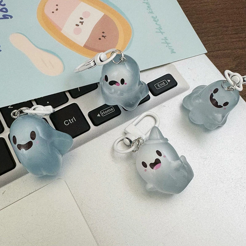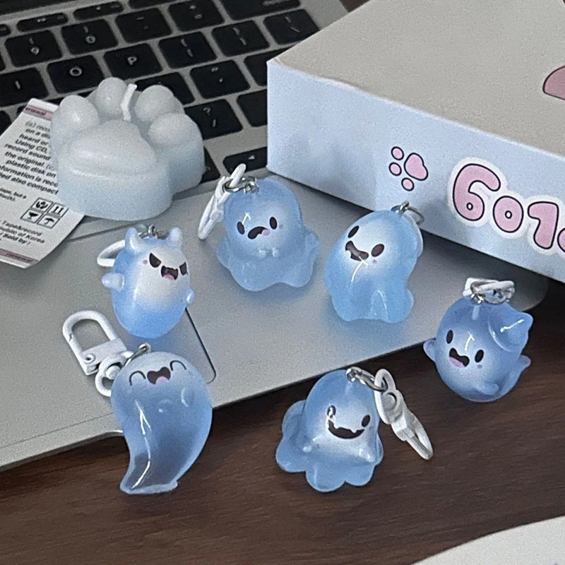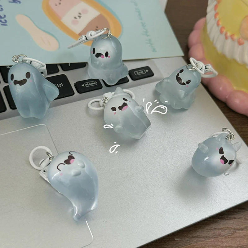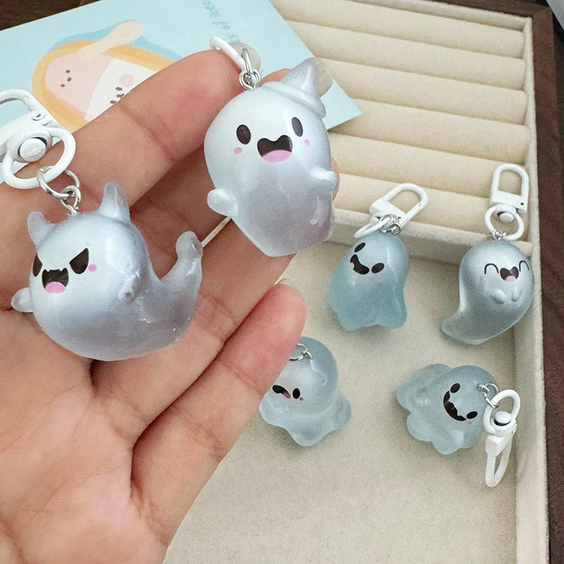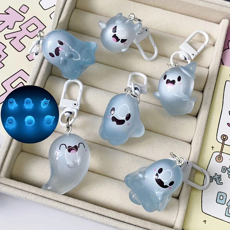 Luminous Halloween Ghost Key Chain Cartoon Jelly Doll Phone Pendant Headphone Case Charm Bag Decor Car Key Ring