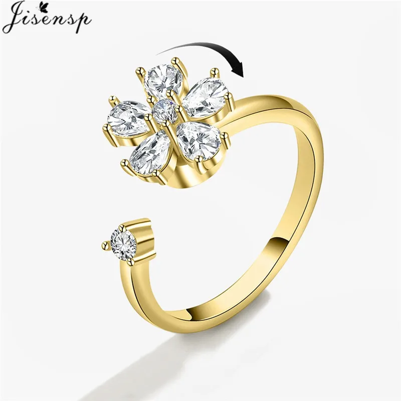 Luxury Fashion Fidget Spinner Ring Anxiety for Women Multiple Crystal Planet Butterfly Finger Rings Anti Stress Wedding Jewerly
