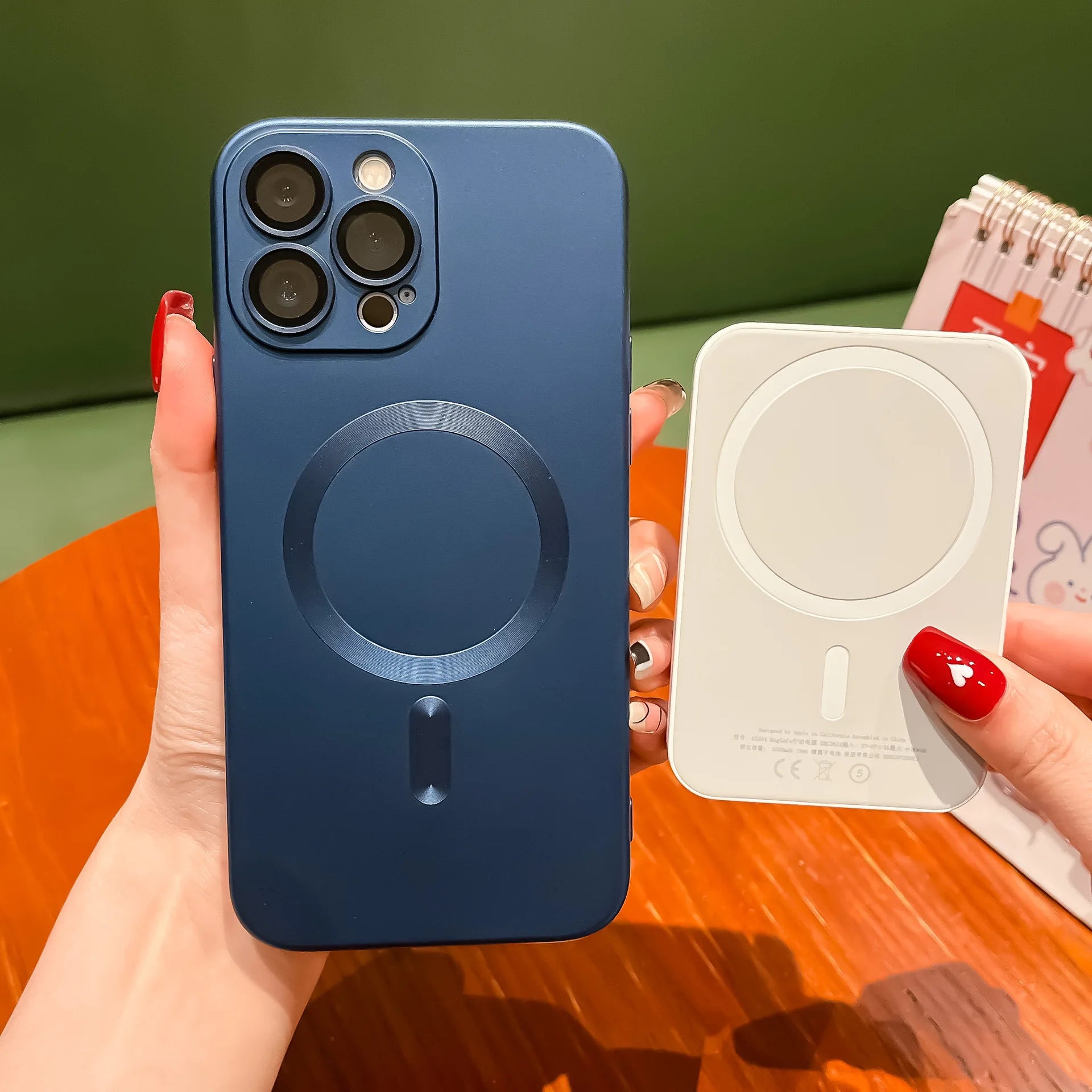 Luxury For Magsafe Matte Phone Cases For iPhone 13 11 12 14 15 Pro Max Magnetic Wireless Charging Case Lens Protector Soft Cover