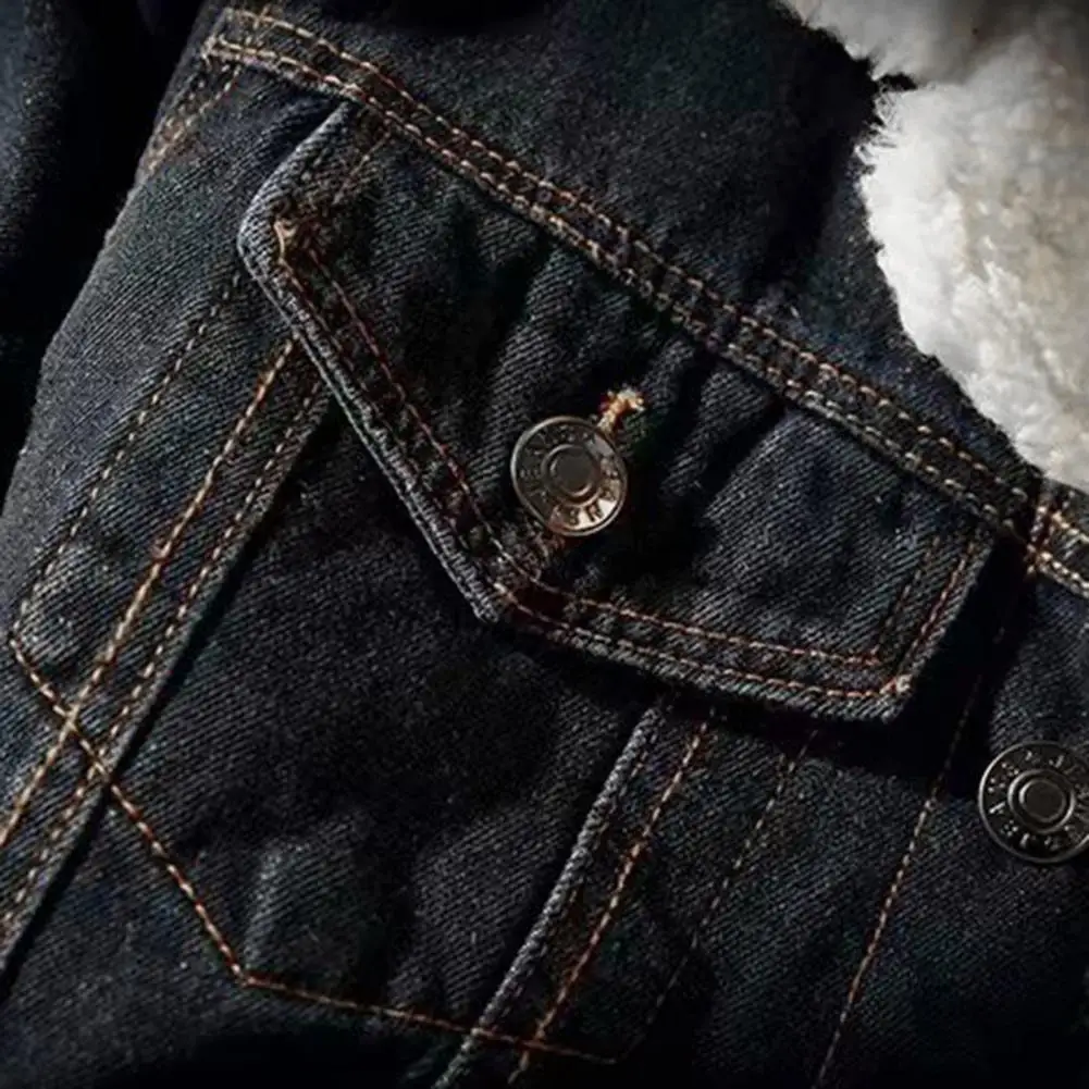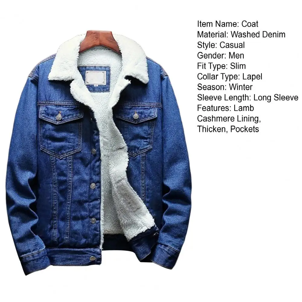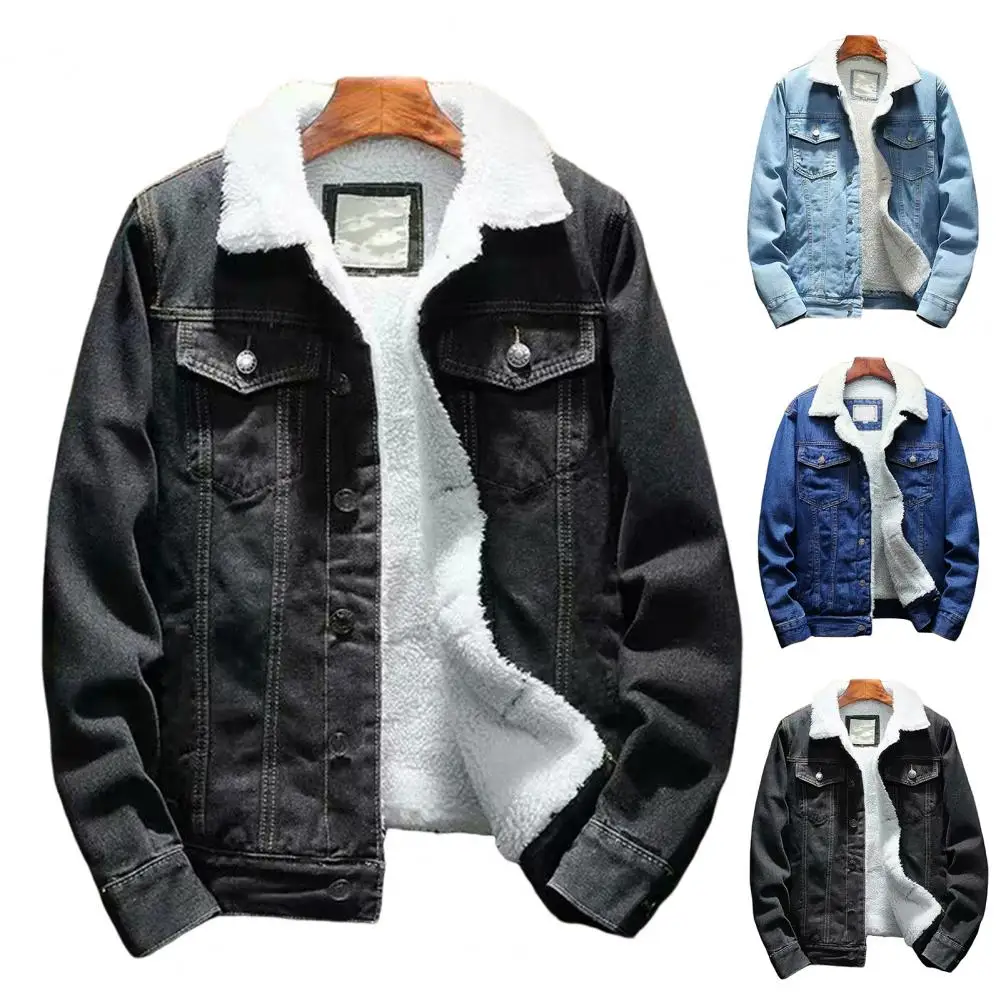 Men Jean Jacket Thicken Lamb Cashmere Lining Men Denim Coat Solid Color Coldproof Outerwear Winter Single Breasted Men Jean Coat