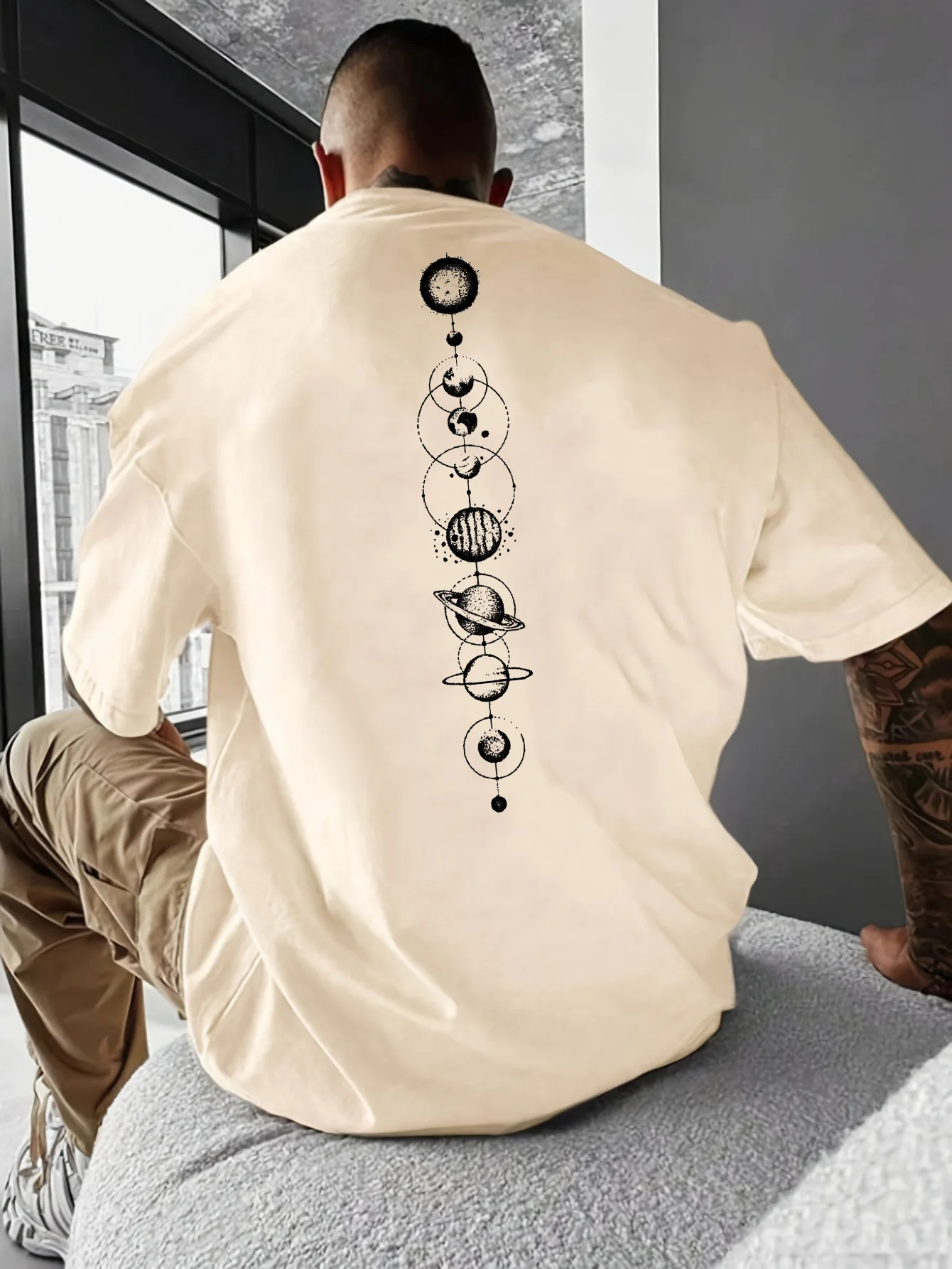 Men's 100% pure cotton summer loose size Planet Graphic print casual slim fit round neck short sleeved T-shirt top