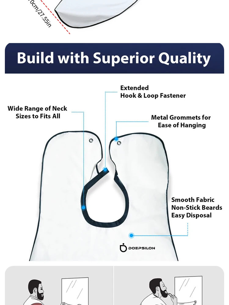 3. Handy design, make your shaving easy, keep your bathroom tidy and clean! Comfortable bib to catch all dropped facial hair.