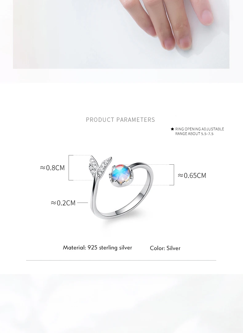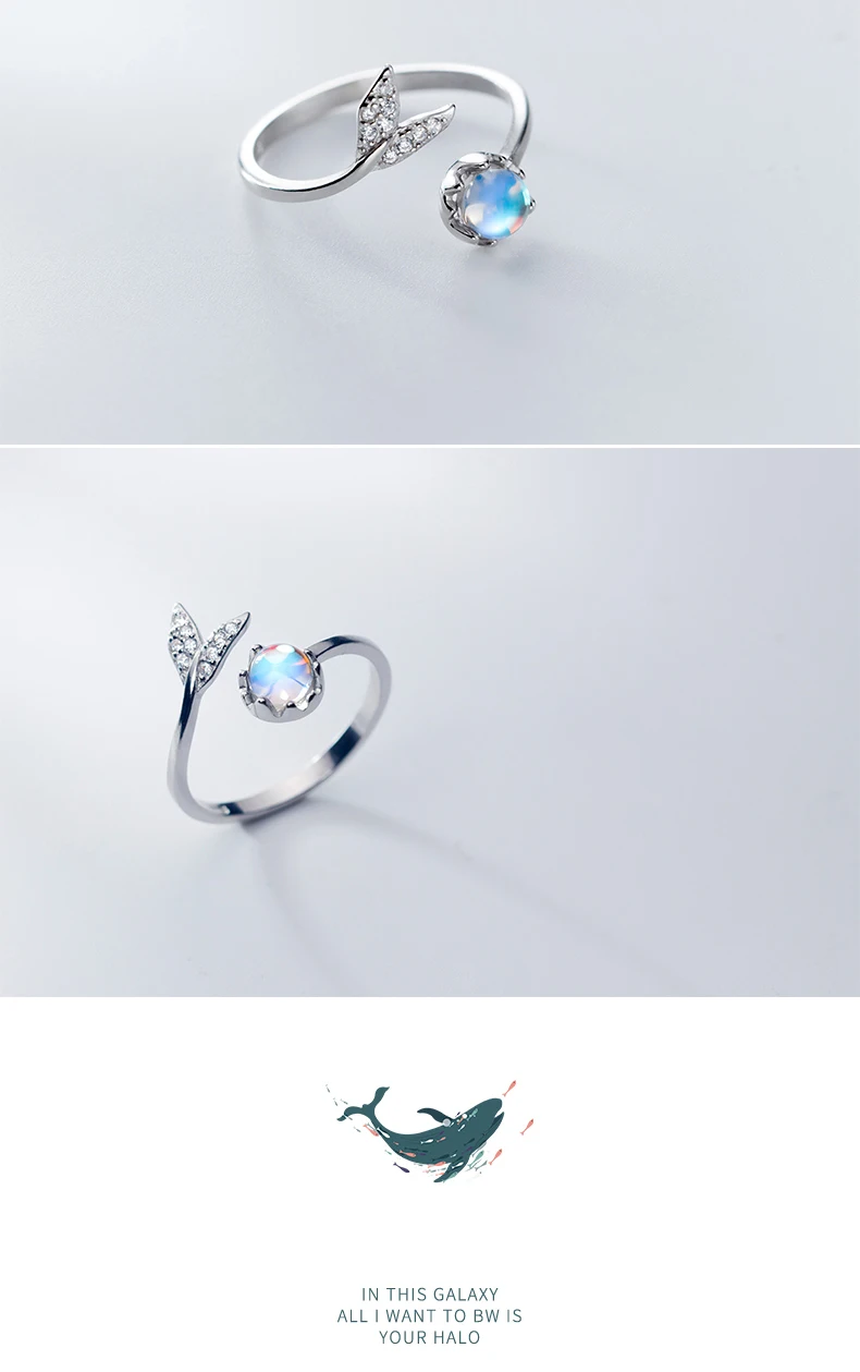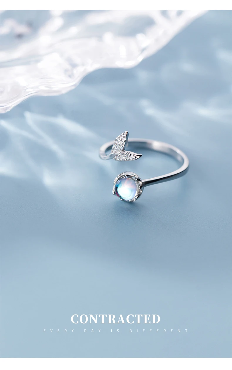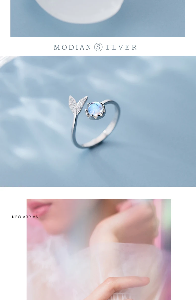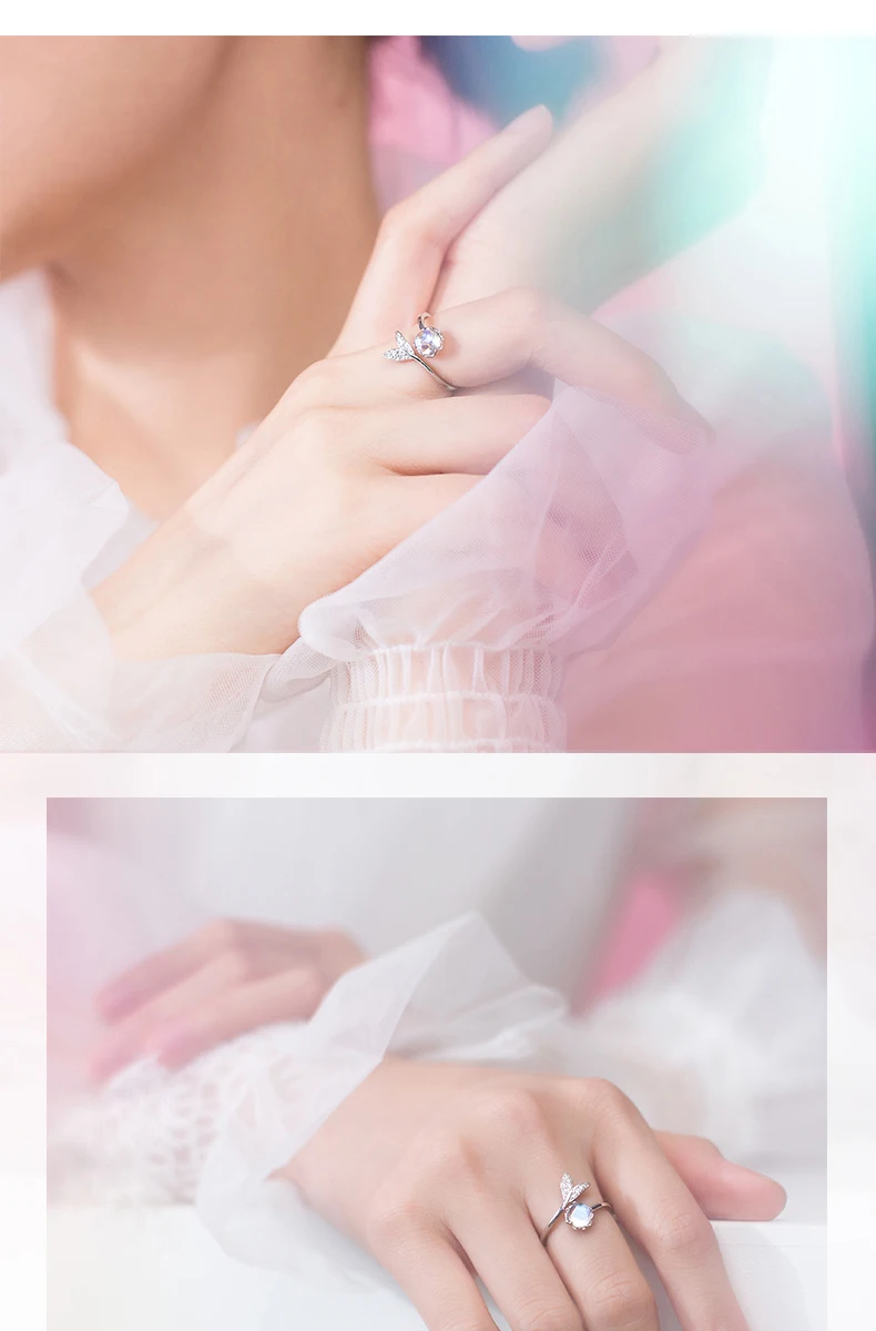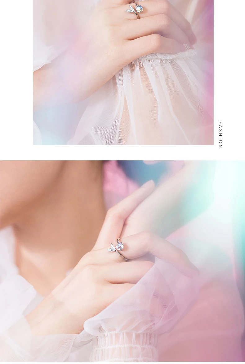 Modian Colorful Crystal Cute Mermaid Tail Open Adjustable Authentic Sterling Silver 925 Ring for Women Original Fine Jewelry