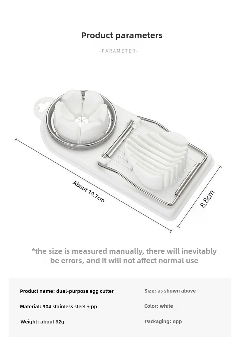 1. Dual purpose egg slicer, made of food grade material, safe and efficient.