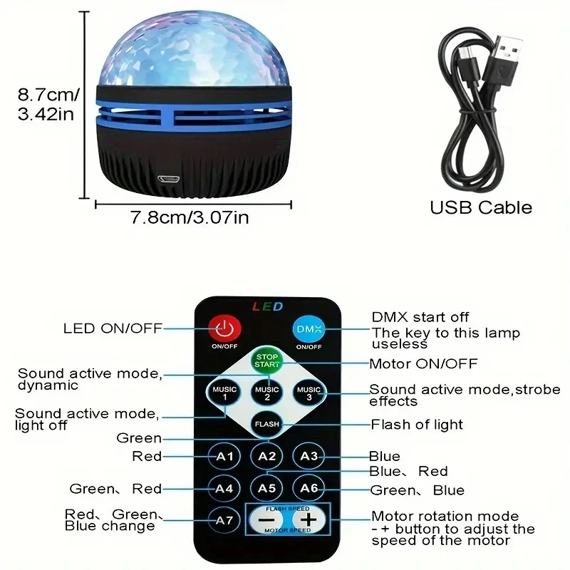 3. Customize the brightness and rotation speed to create your perfect ambiance.