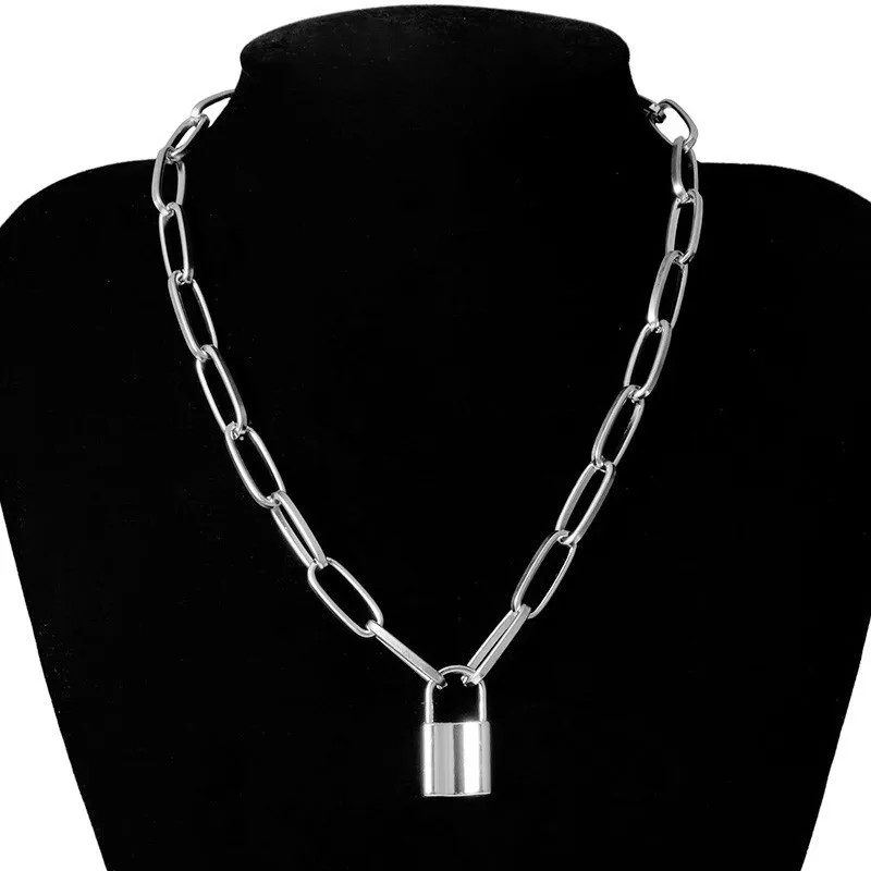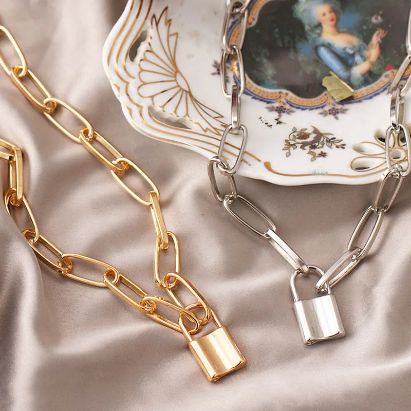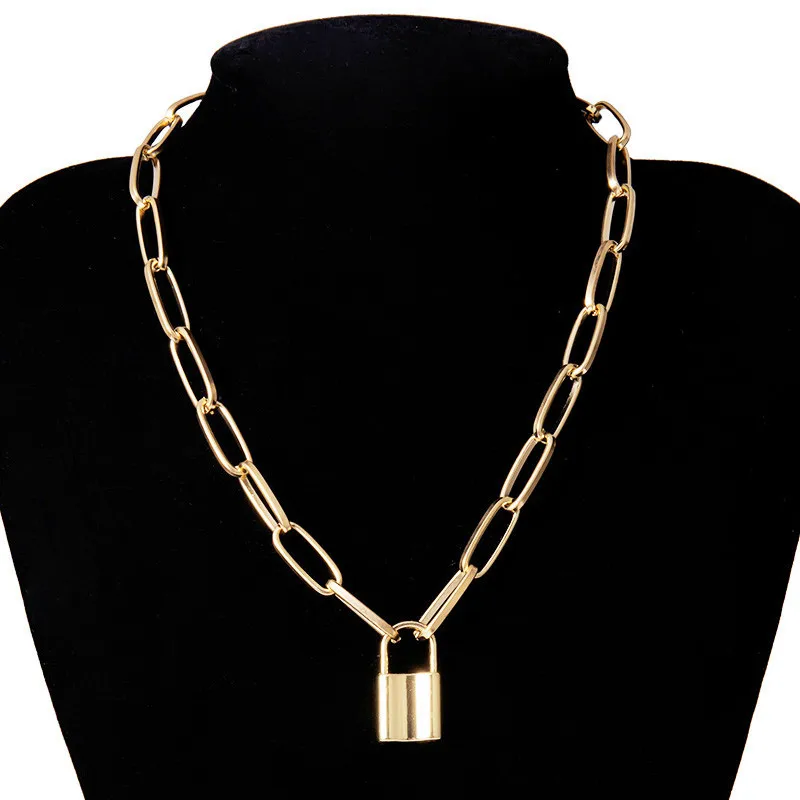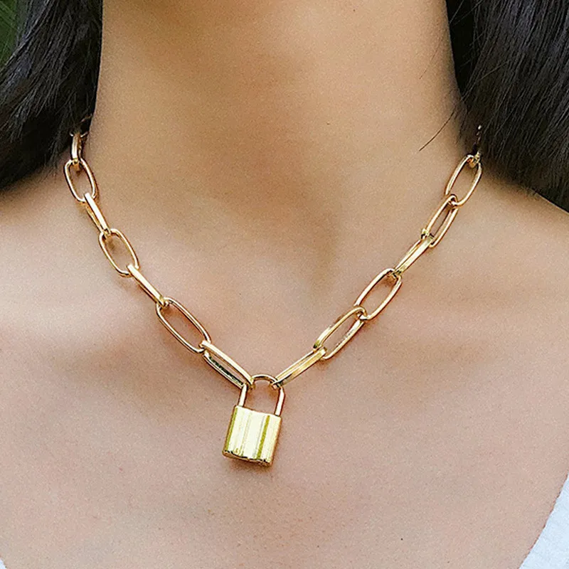 Popular Lock Pendant Chain Necklace Punk Link Chain Gold Color Padlock Pendant Necklace Women Fashion Gothic Jewelry Gift