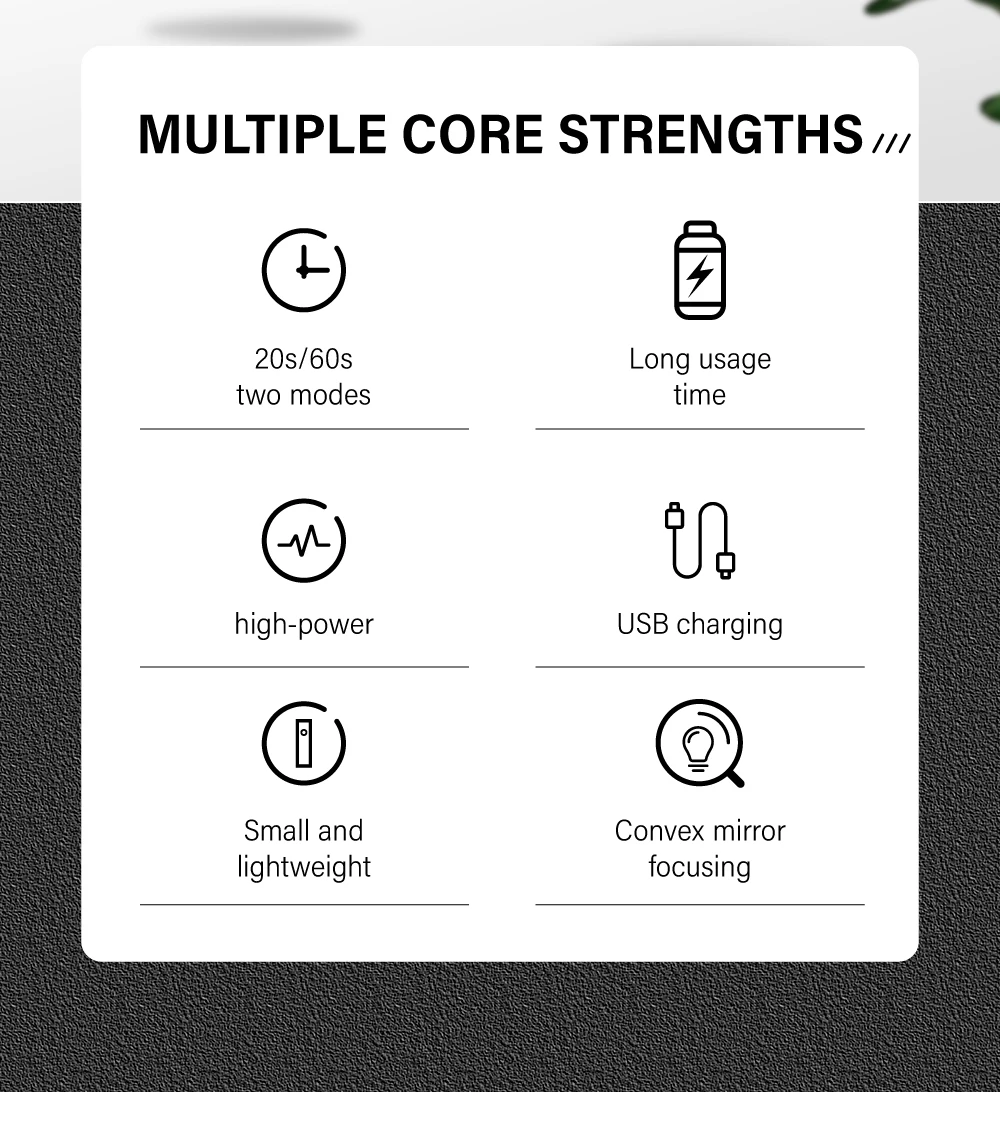 1.Innovative UV nail lamp :With a special "1" design, 360°. Using 365 + 405 nanometer high quality beads with convex mirrors for up to 5x magnification of the spotlight, it can easily bond diamonds and nail tips, ideal for complex single nail decoration, shortening curing time, effective and uniform multi-angle, allowing complete curing on every side and edge, avoiding running and movement of nail accessories. Effectively solves the problem of difficult nail gel.The built-in 250mAh rechargeable battery can be used to store electricity when fully charged, and get rid of the trouble of wires.