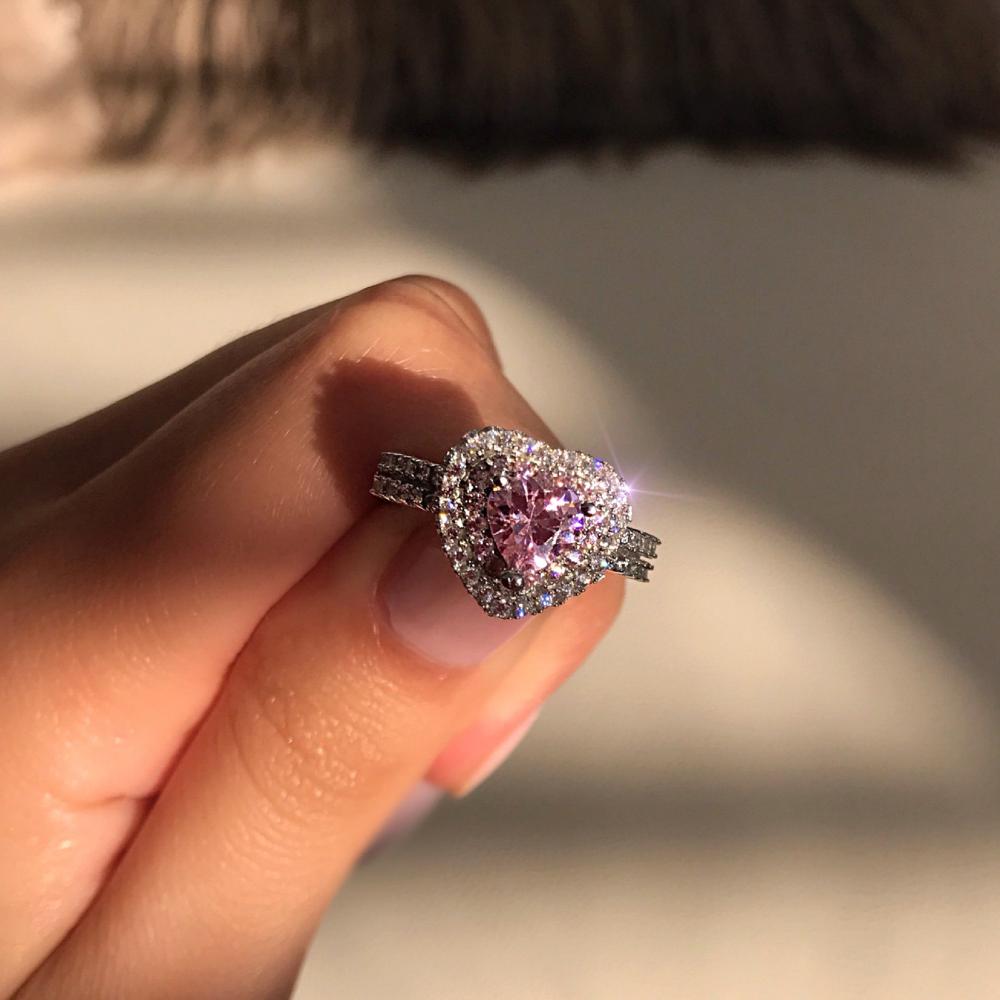 Jewelry Jewelry Accessories Rhinestone Ring Women Pink Heart-shaped Platinum Plated Accessories