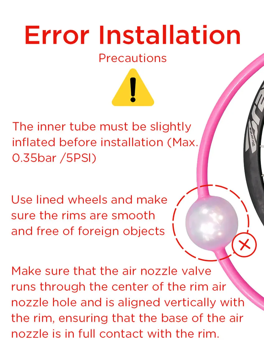 This inner tube cannot be inflated a lot when it is not installed in the outer tire, otherwise it will cause irreversible damage!