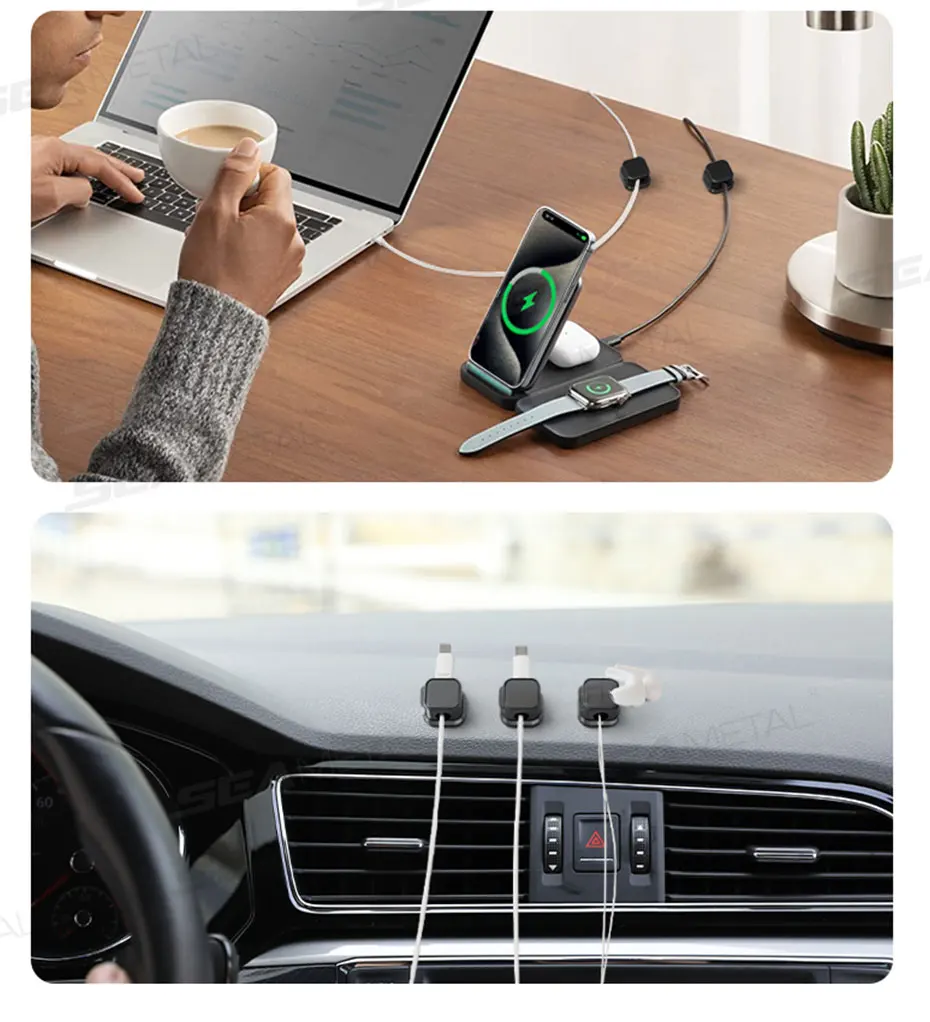SEAMETAL 10Pcs Magnetic Cable Holder Self Adhesive Cord Clip Smooth Pulling Charging Cable Keeper Wire Clip for Car/Home/Office