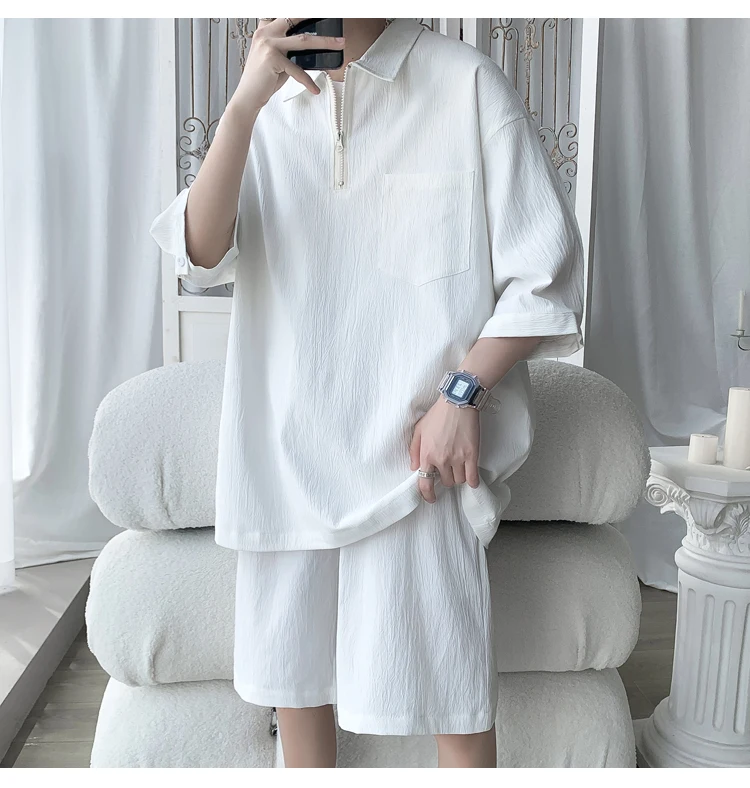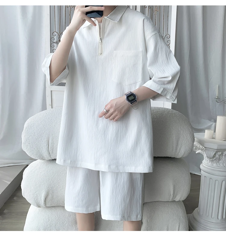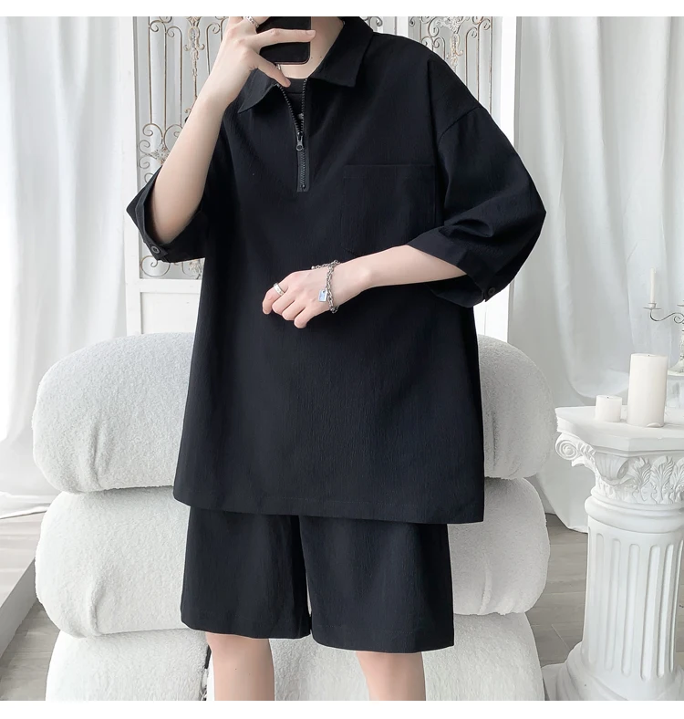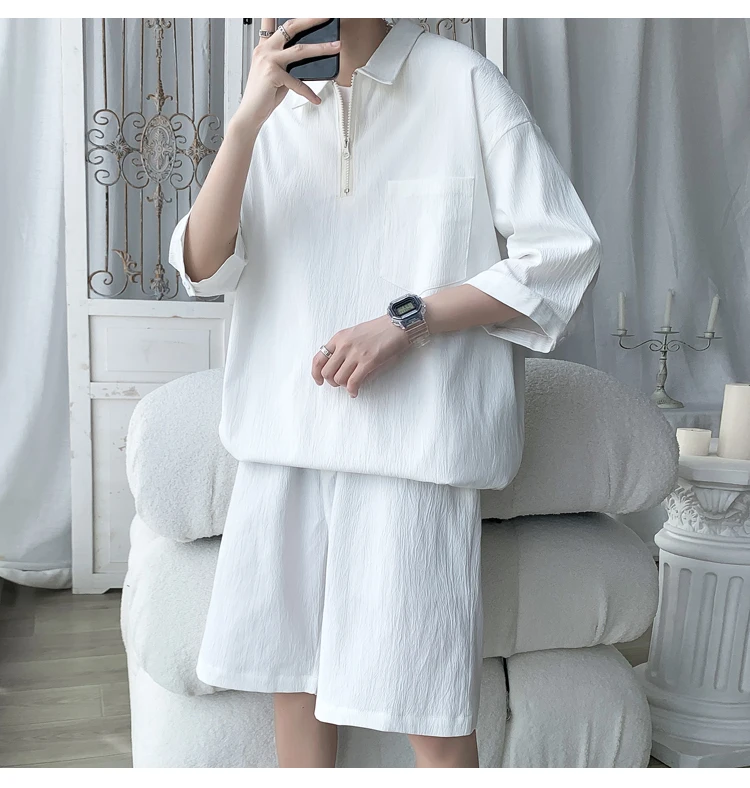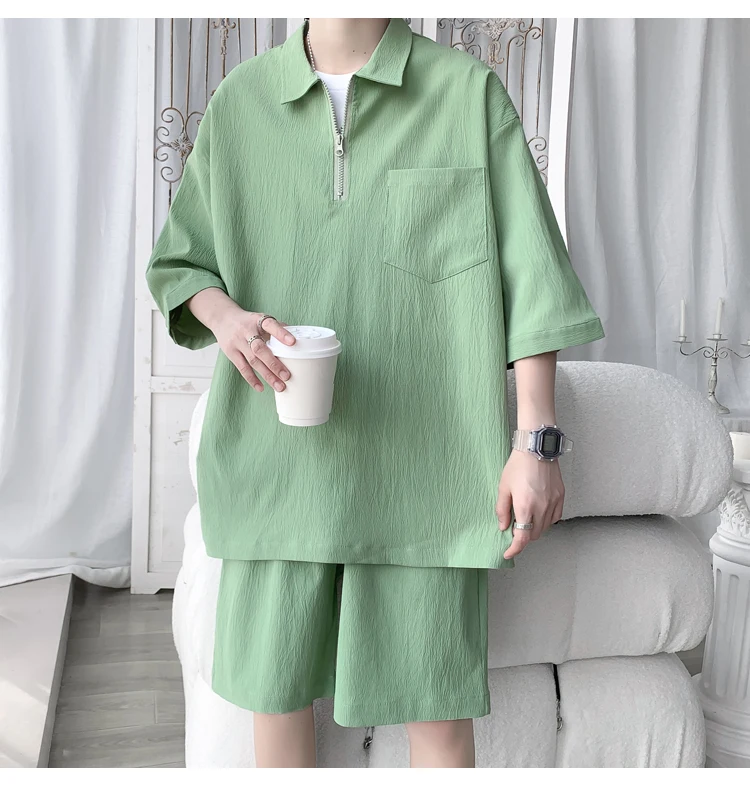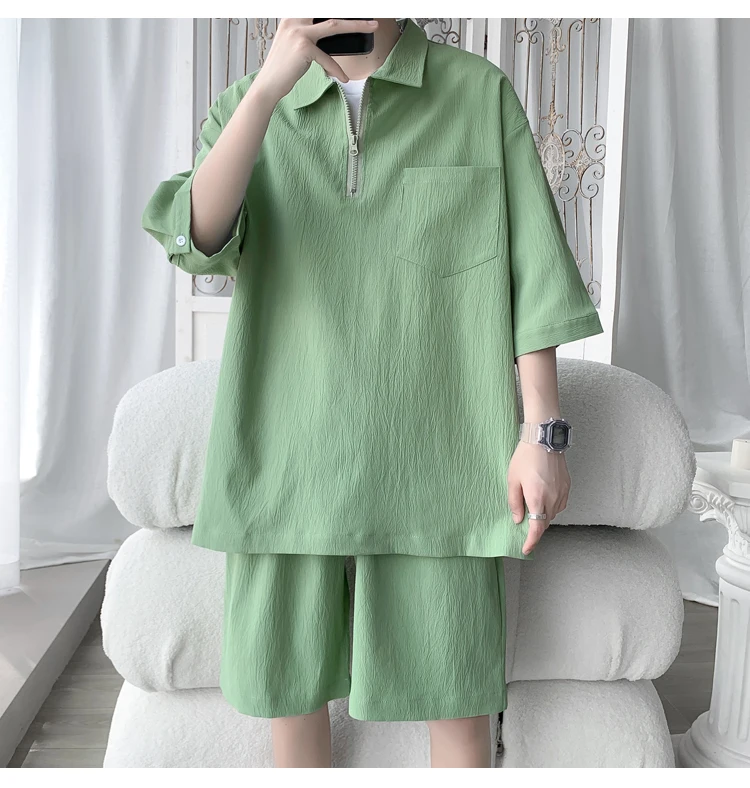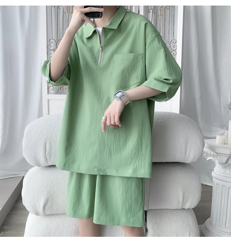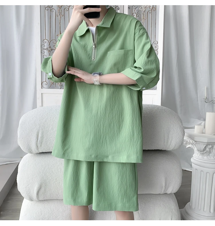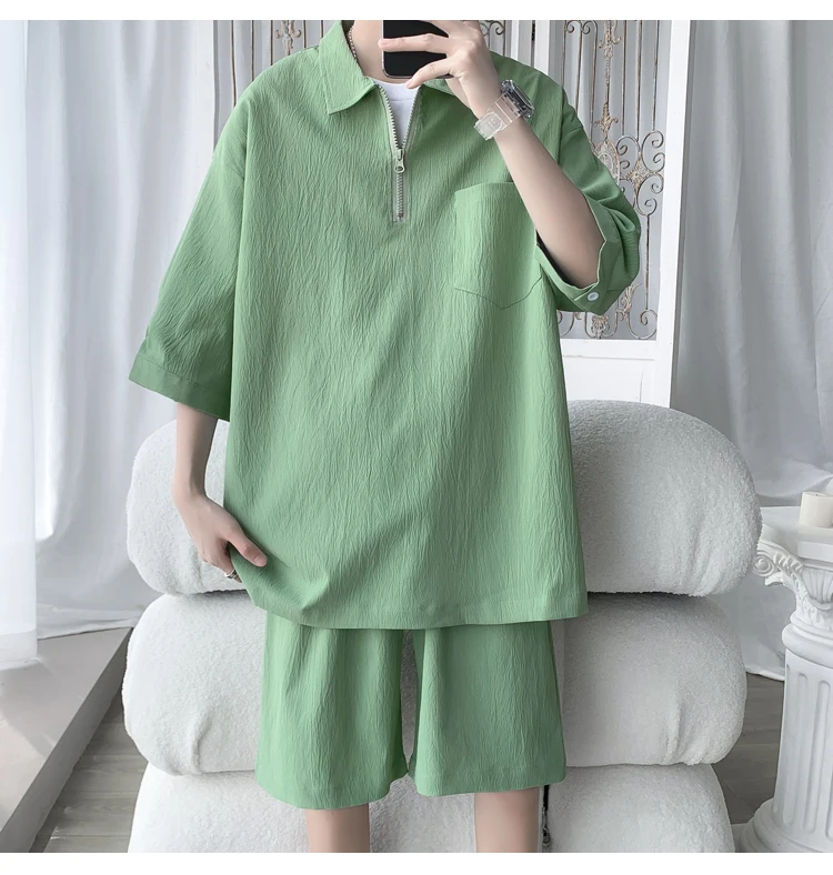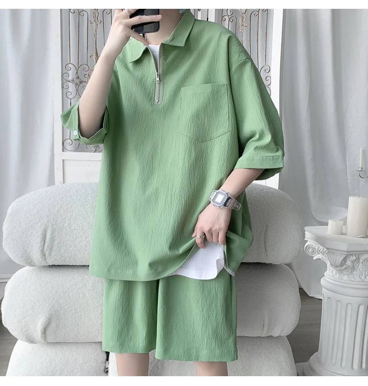 Shirts + shorts new style summer fashion Sportswear Men's Casual Sets Male Fashion shorts and shirts men full size M-4XL TZ031