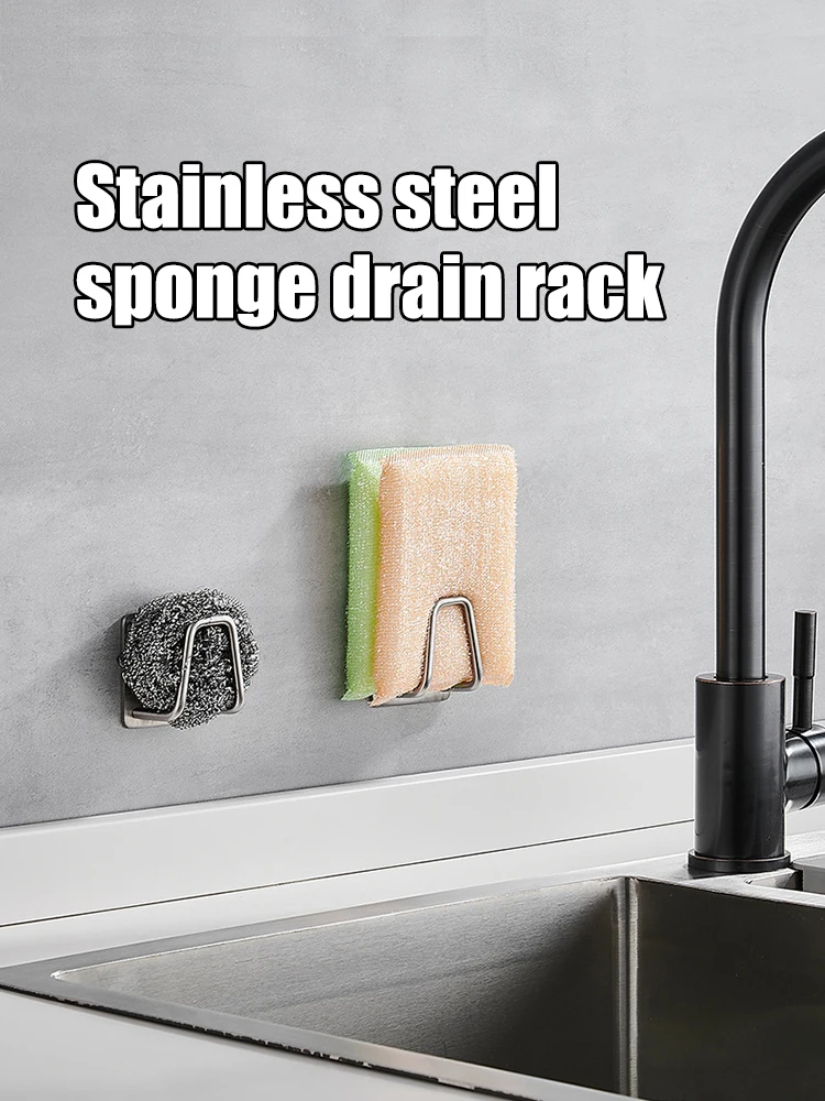 Stainless Steel Sink Sponge Drain Rack Kitchen Steel Wire Ball Rust-Resistant Waterproof Strong Viscous Sponge Storage Organizer