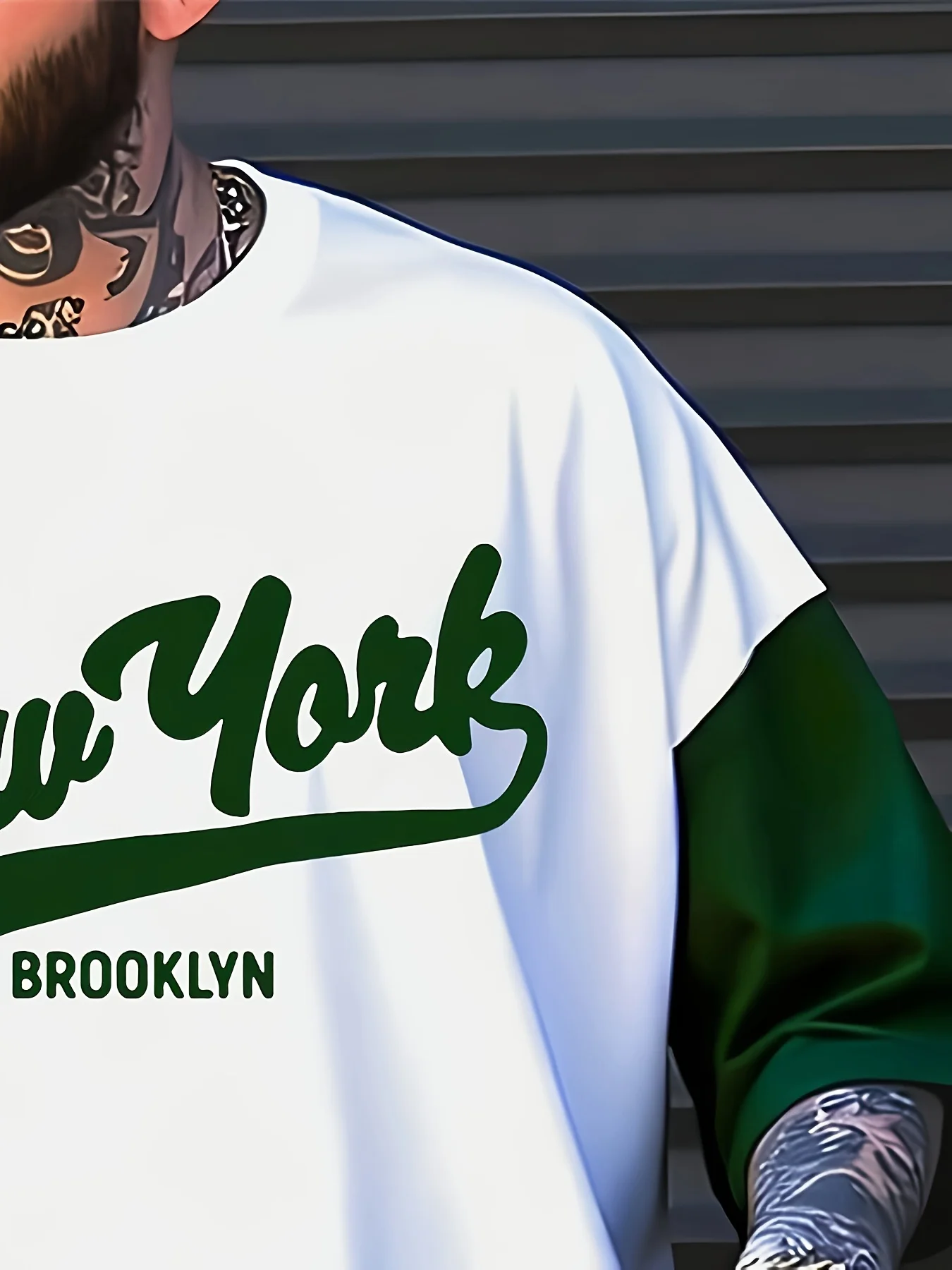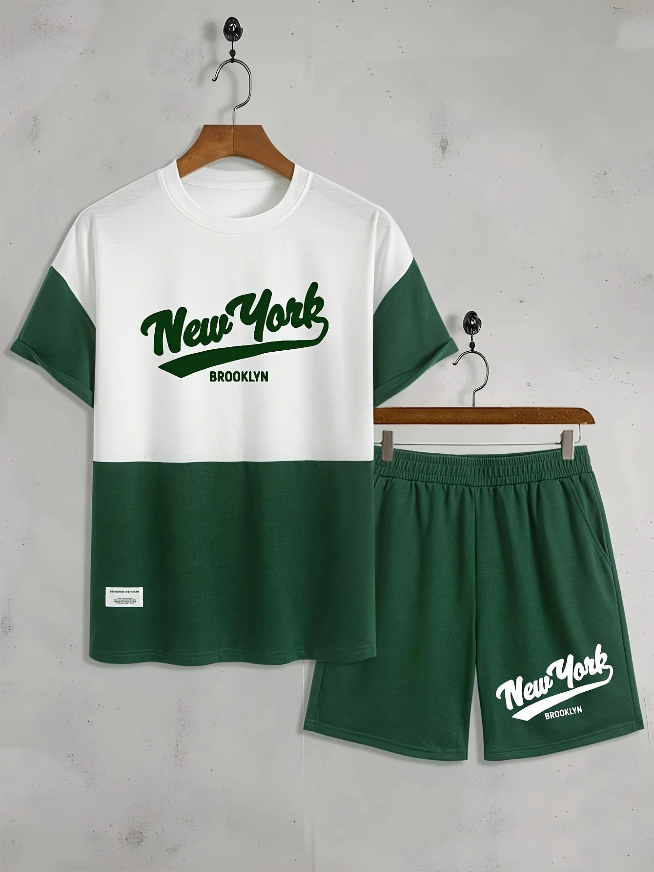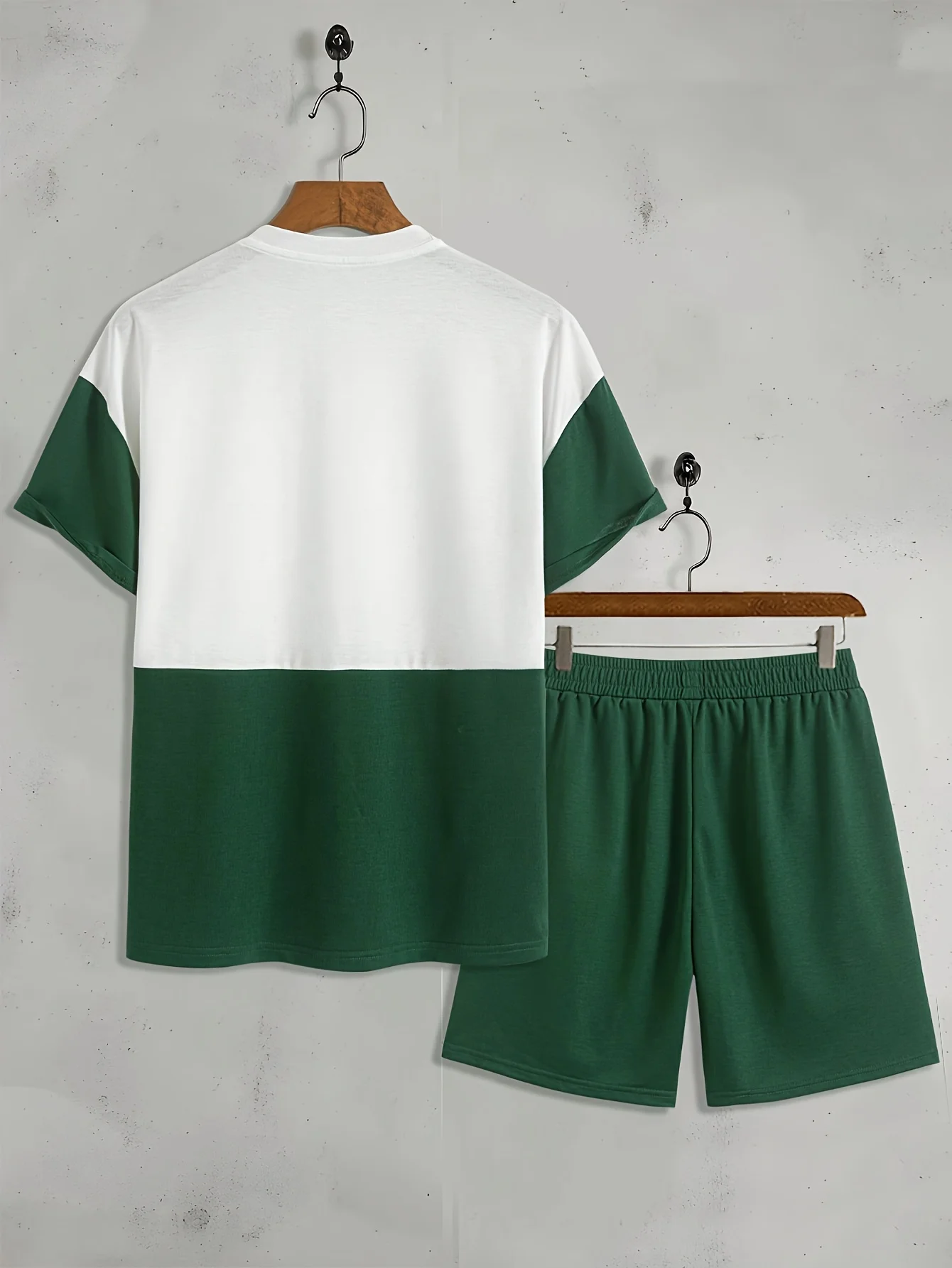 Summer 2025 new men's casual sportswear set 3D digital printed round-neck short-sleeved color block T-shirt and shorts