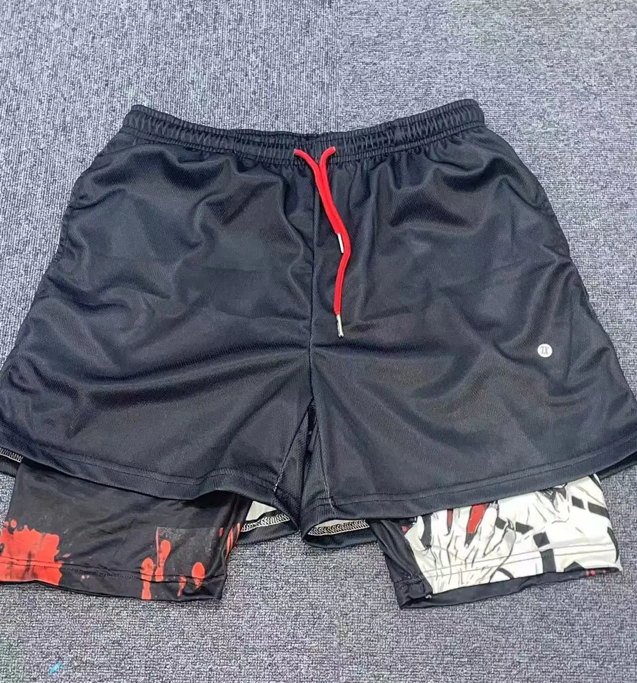 Summer men's double layered shorts men Anime high waisted oversized breathable Athletic Gym Short Pants Training Fitness shorts
