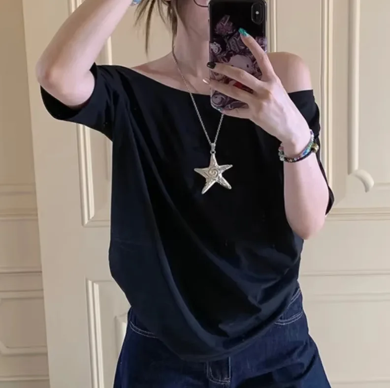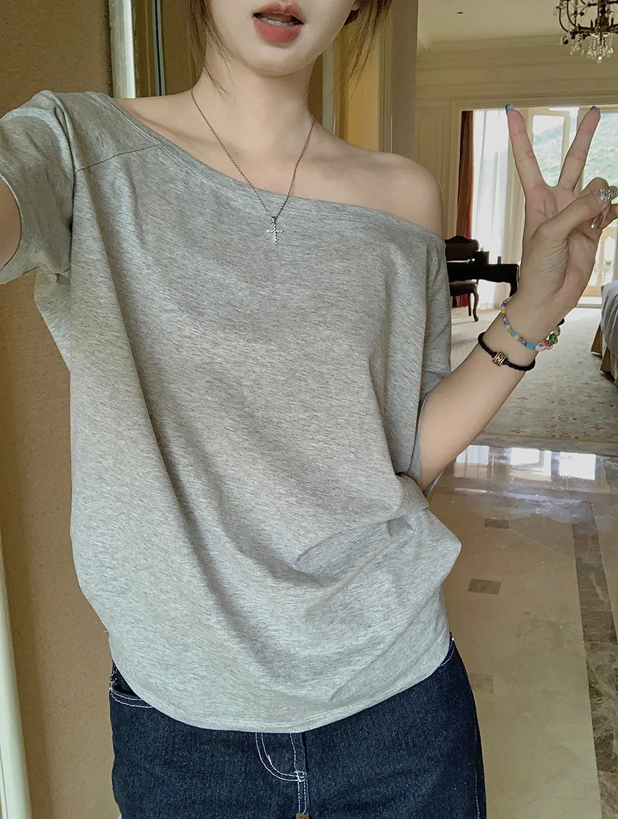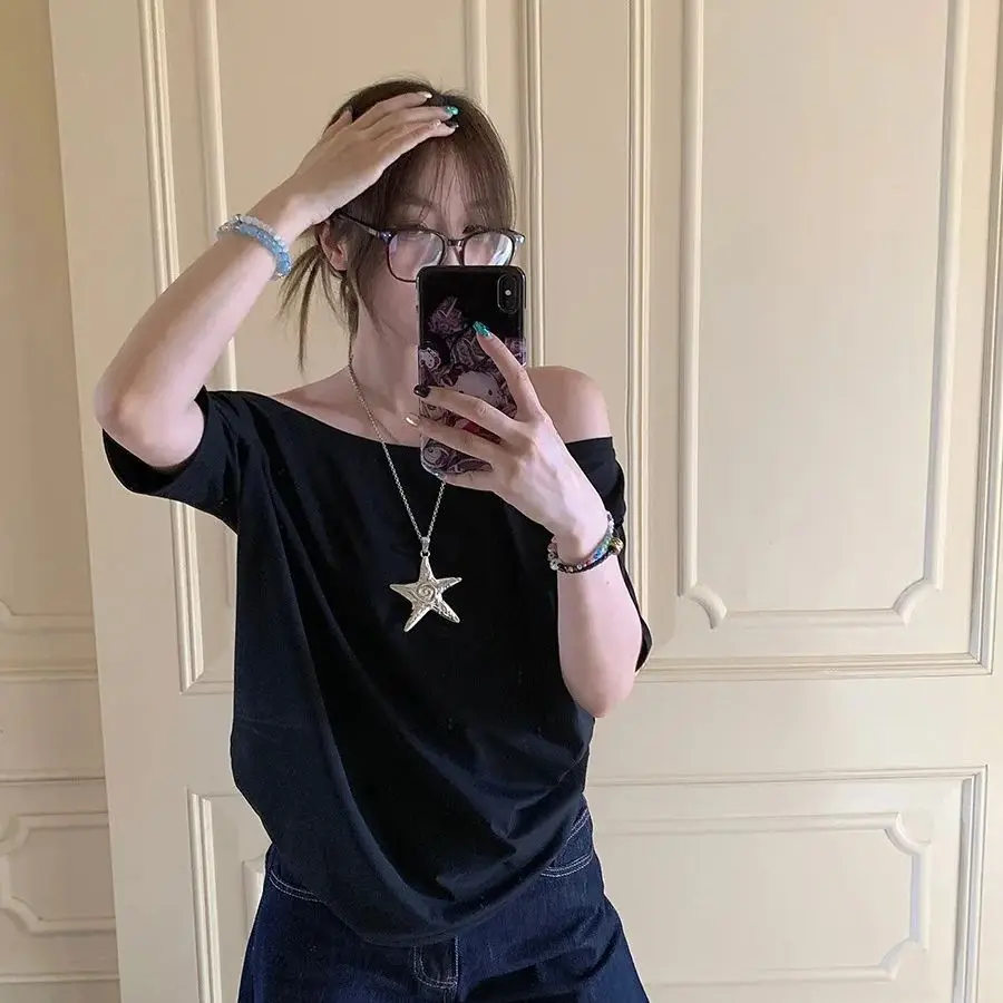 T-shirts Women Solid Simple Summer Casual Cleanfit Short Sleeve All-match Young Girls Streetwear Y2k Top Aesthetic Clothes Ins
