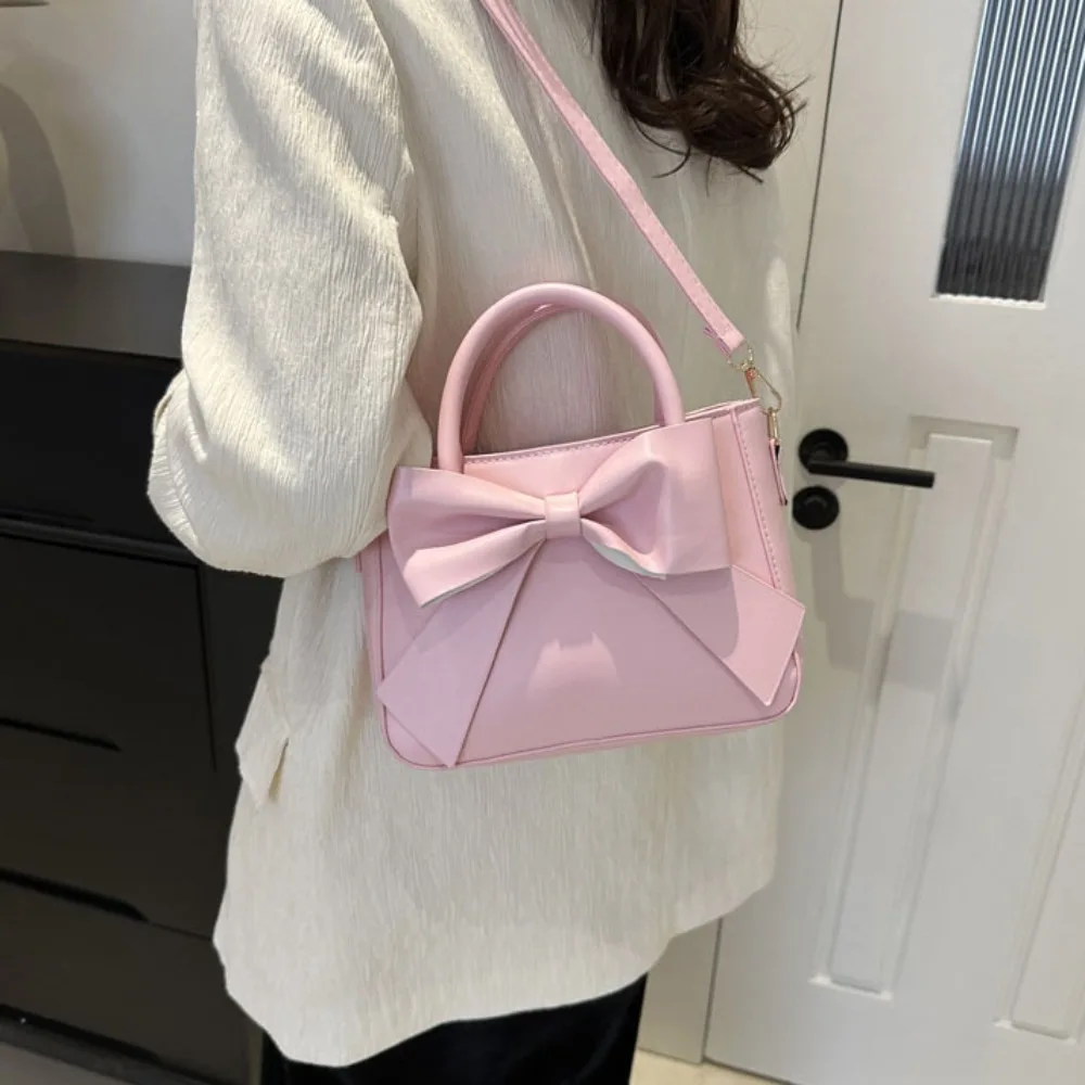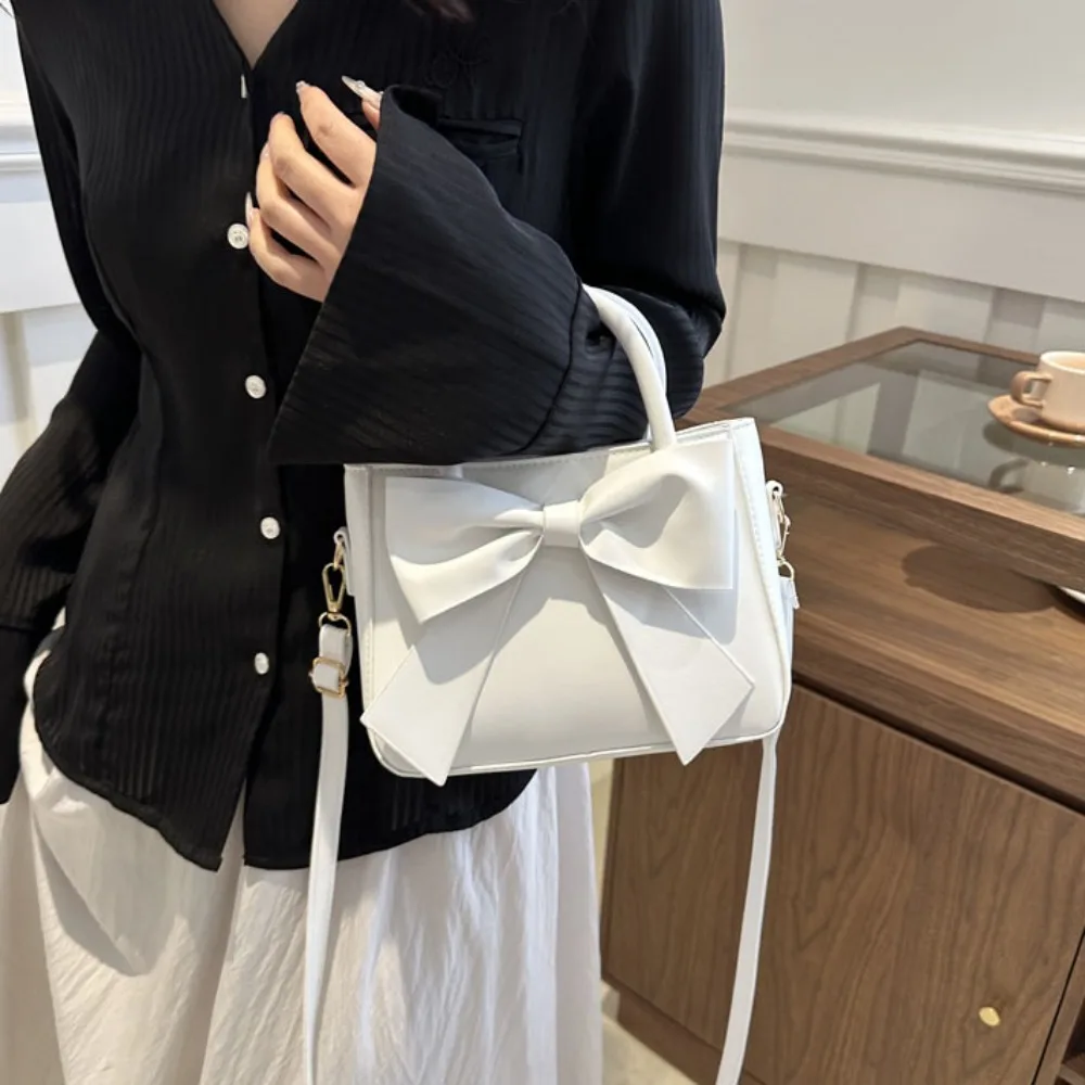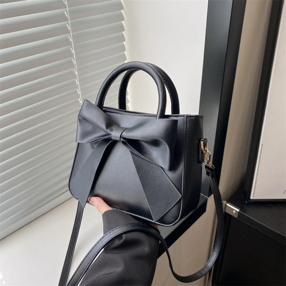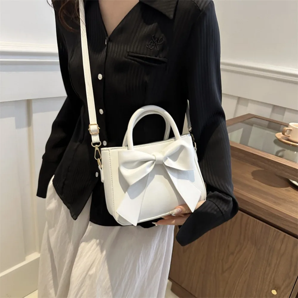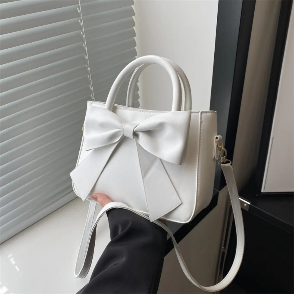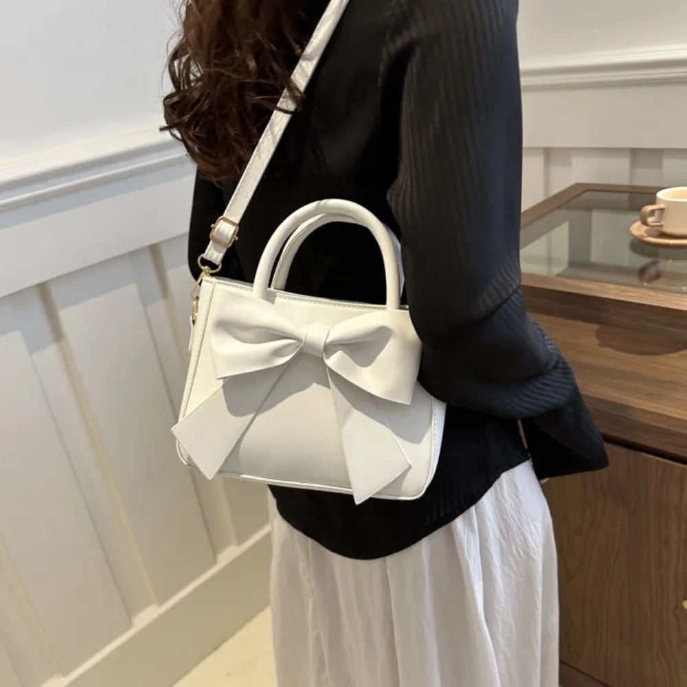 Trendy Bow Lady Shoulder Bag Handbag Solid Underarm Bag Daily Commuting Bag Casual Messenger Bag Sweet PU Leather Square Bag