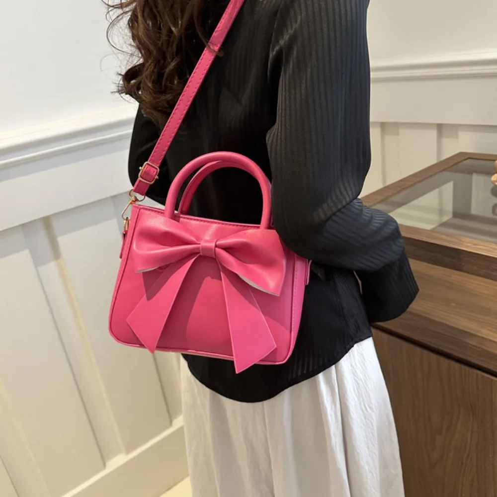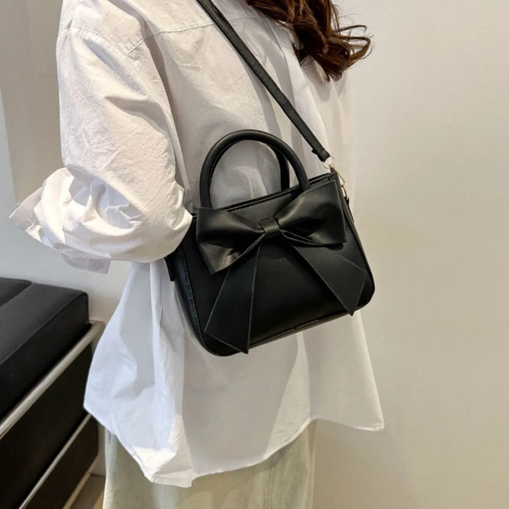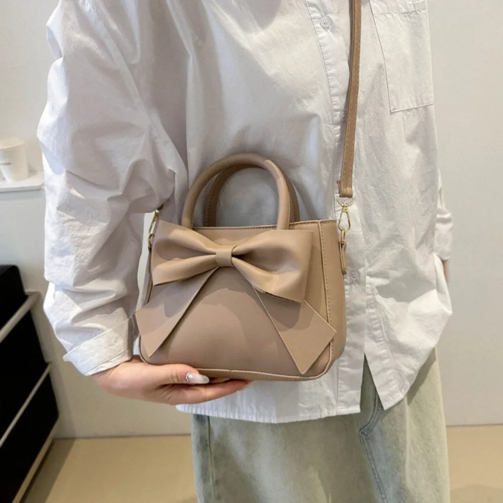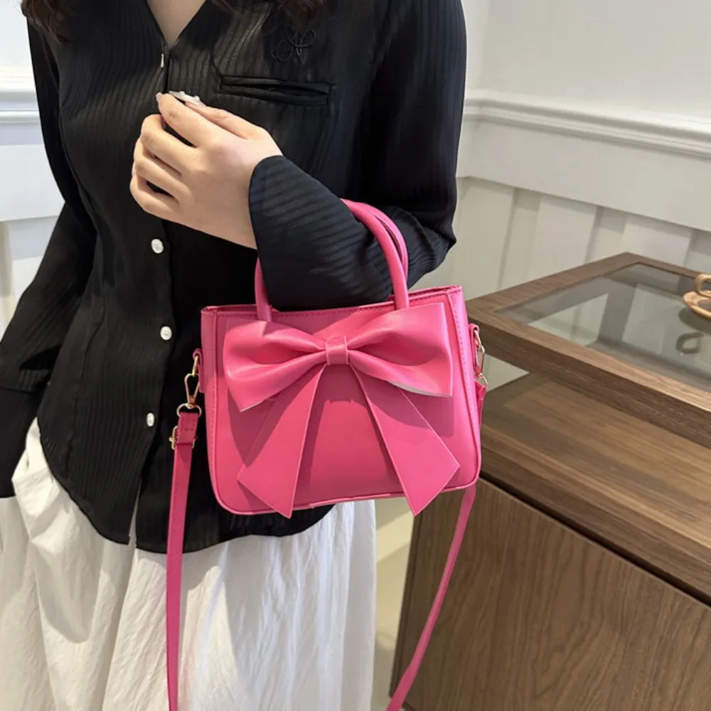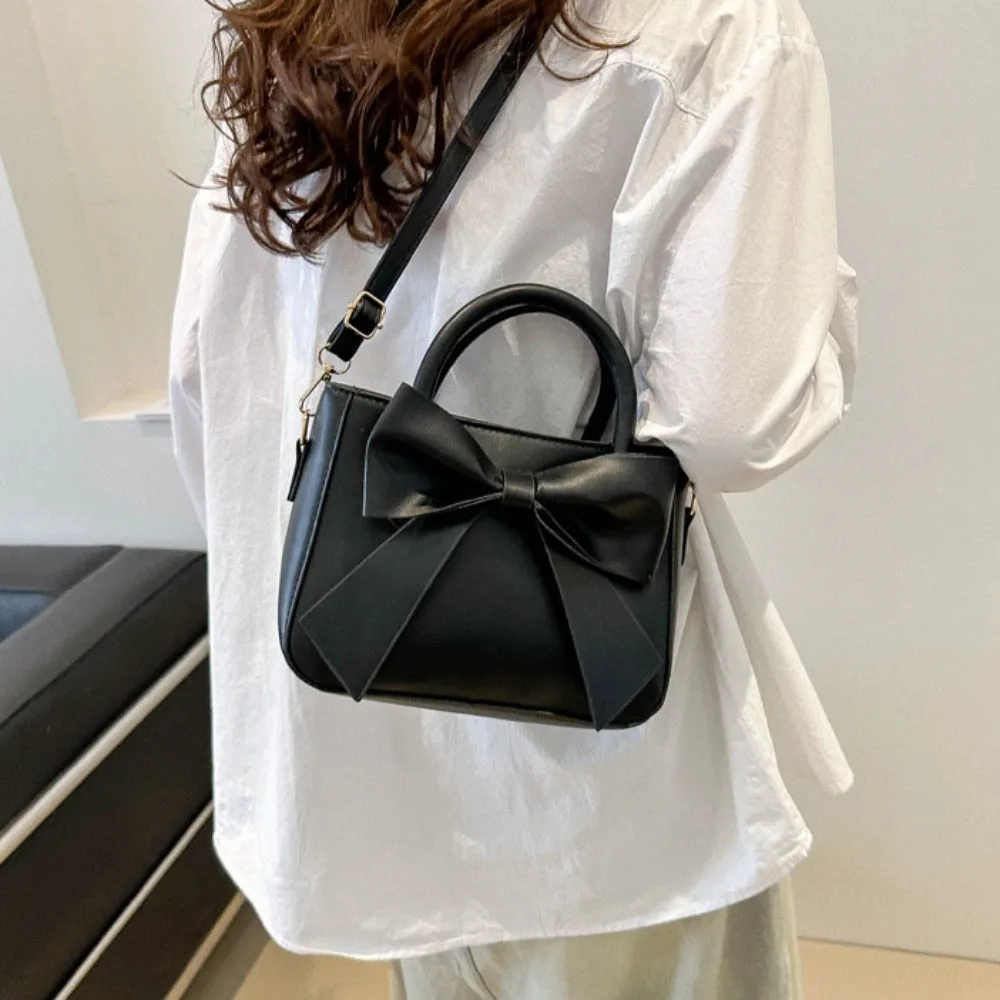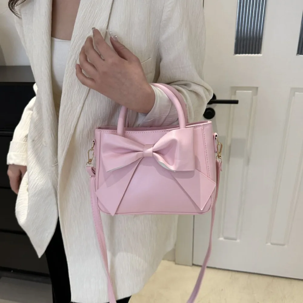 Trendy Bow Lady Shoulder Bag Handbag Solid Underarm Bag Daily Commuting Bag Casual Messenger Bag Sweet PU Leather Square Bag