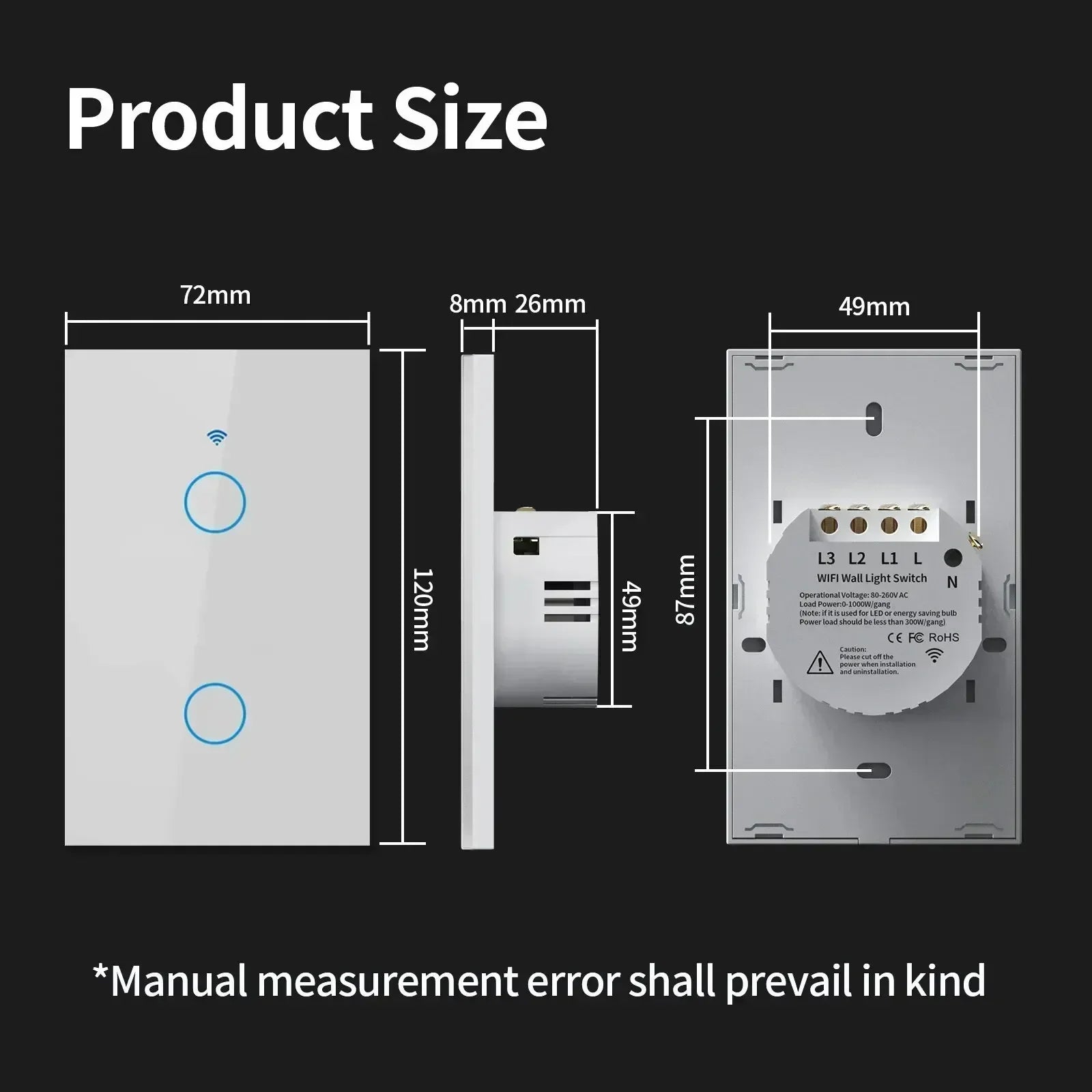 Tuya US WiFi+Bluetooth Smart Switches No Neutral Wire Required 1/2/3/4 Gang Light WiFi Touch Switch Work with Alexa Google Home