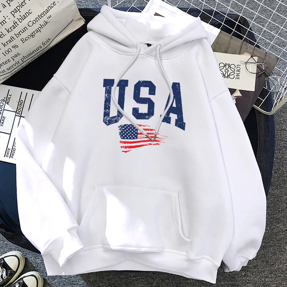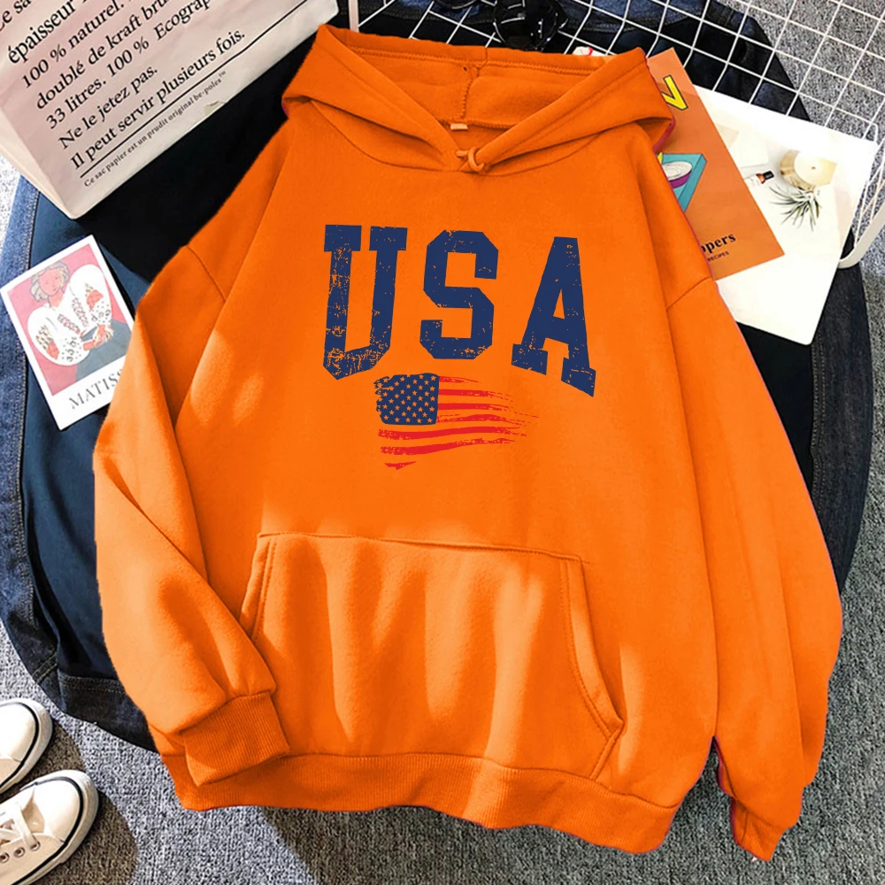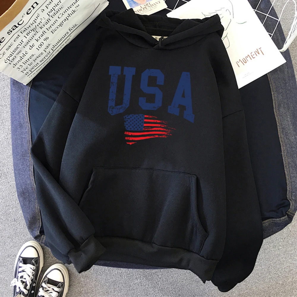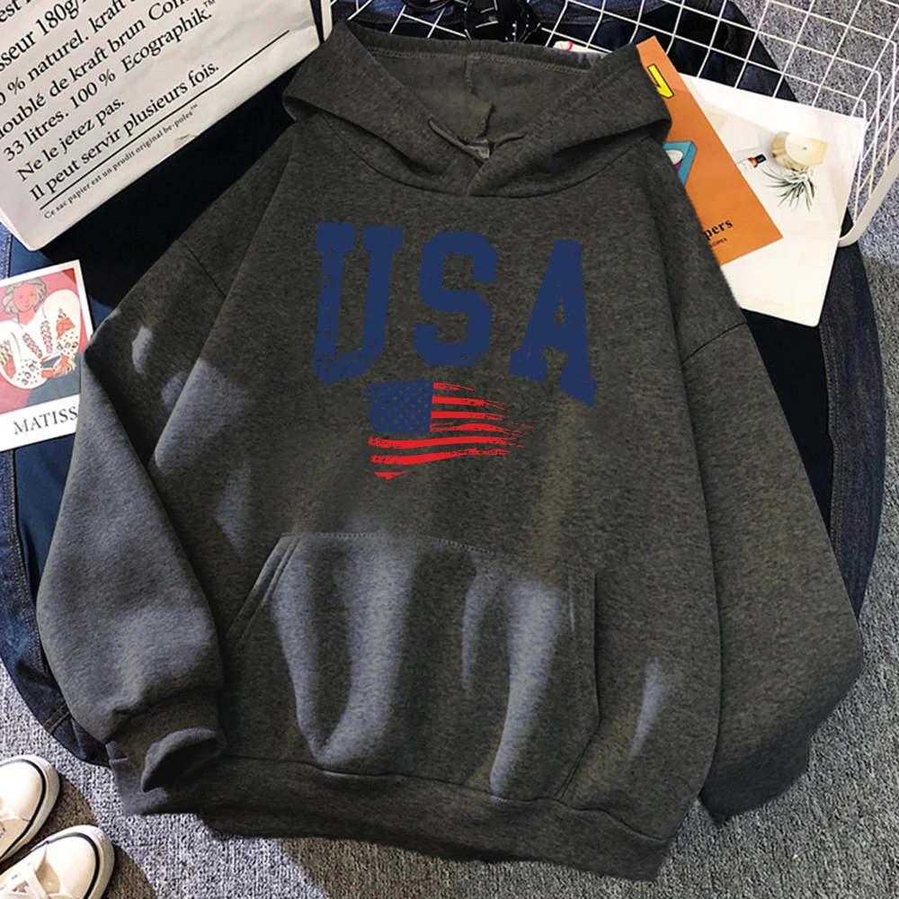 USA Fluttering National Flag Design Hoodie Women Creative Loose Hoody Crewneck Casual Streetwear Comfortable Female Sweatshirts