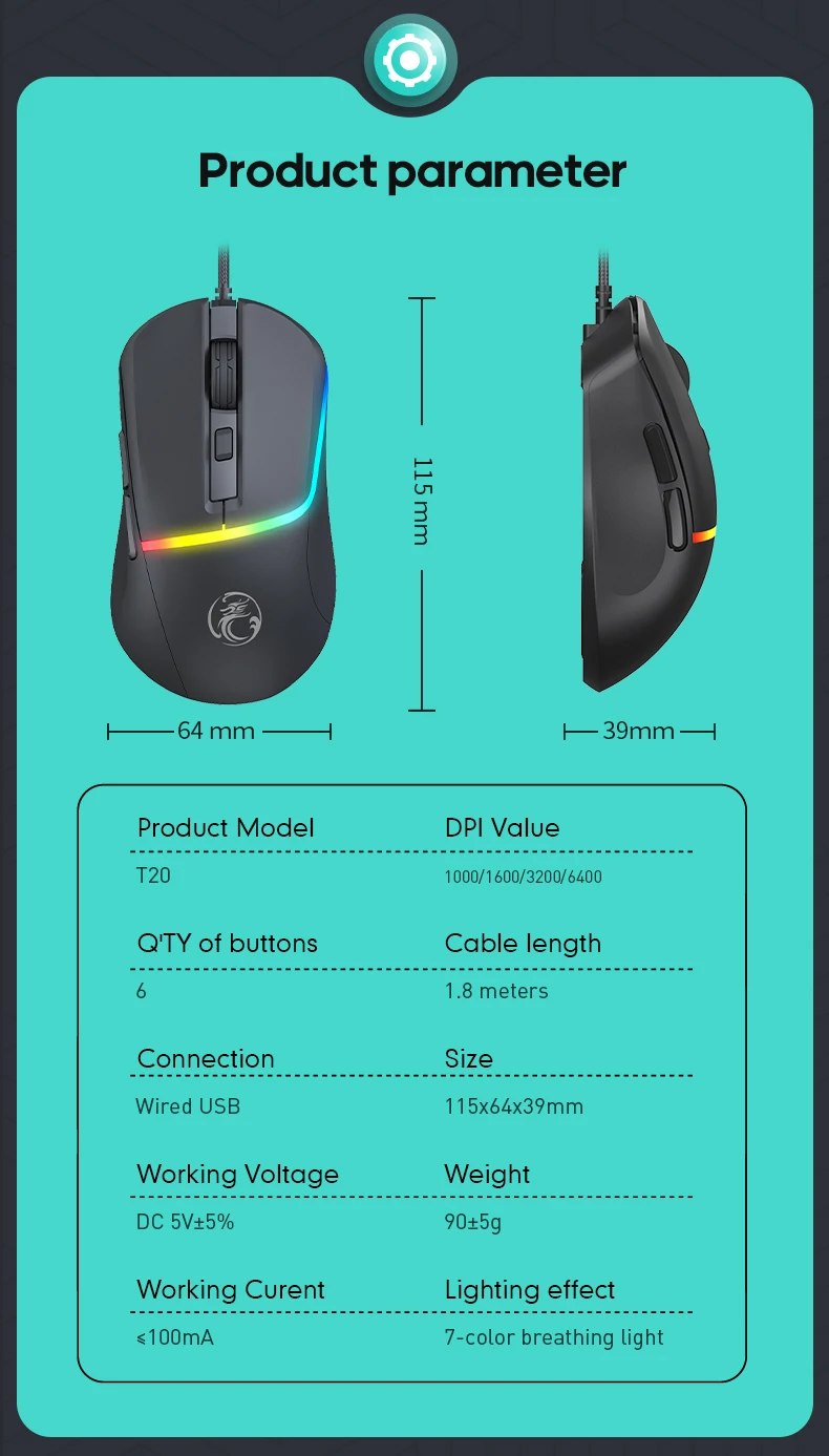 Wired USB Gaming Mouse Wired with Backlit Computer Mice High Precision Optical Sensor Gaming Mice for Windows Gaming Wired Mouse