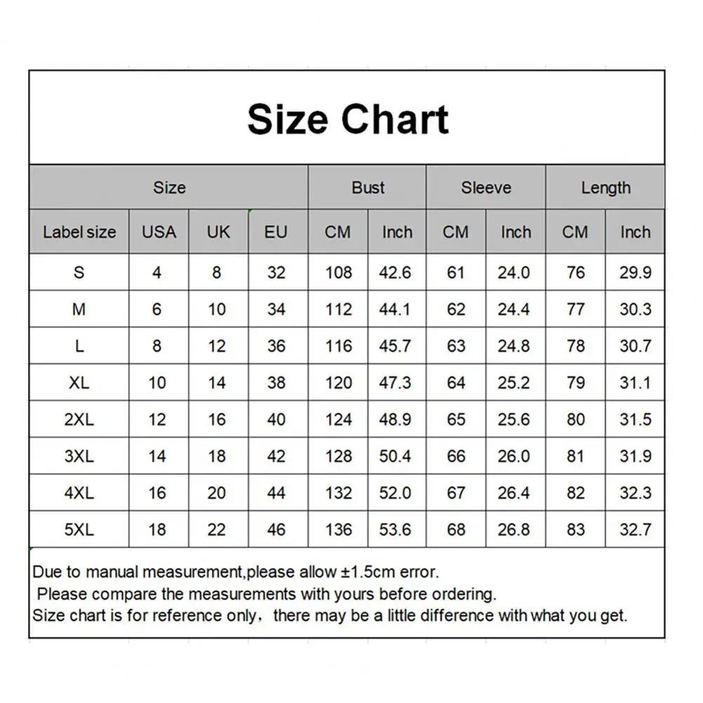 [Our Size 3XL] Bust: 128cm/50.39", Sleeve: 66cm/25.98", Length: 81cm/31.89" (Approx.)