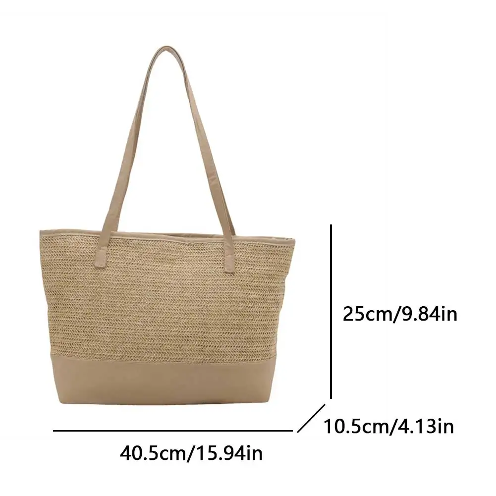 1. Premium Material Quality: Crafted from high-quality straw fabric, this fashion shoulder bag is not only soft and comfortable but also easy to maintain. Its construction ensures long-lasting use, making it a practical choice for everyday activities. Specification: Origin: Mainland China Shape: Casual Tote Main Material: Straw Size: 405*105*250mm/15.94*4.13*9.84in Usage: Hand-Held, ShoulderShoulder Strap Is Not Adjustable.