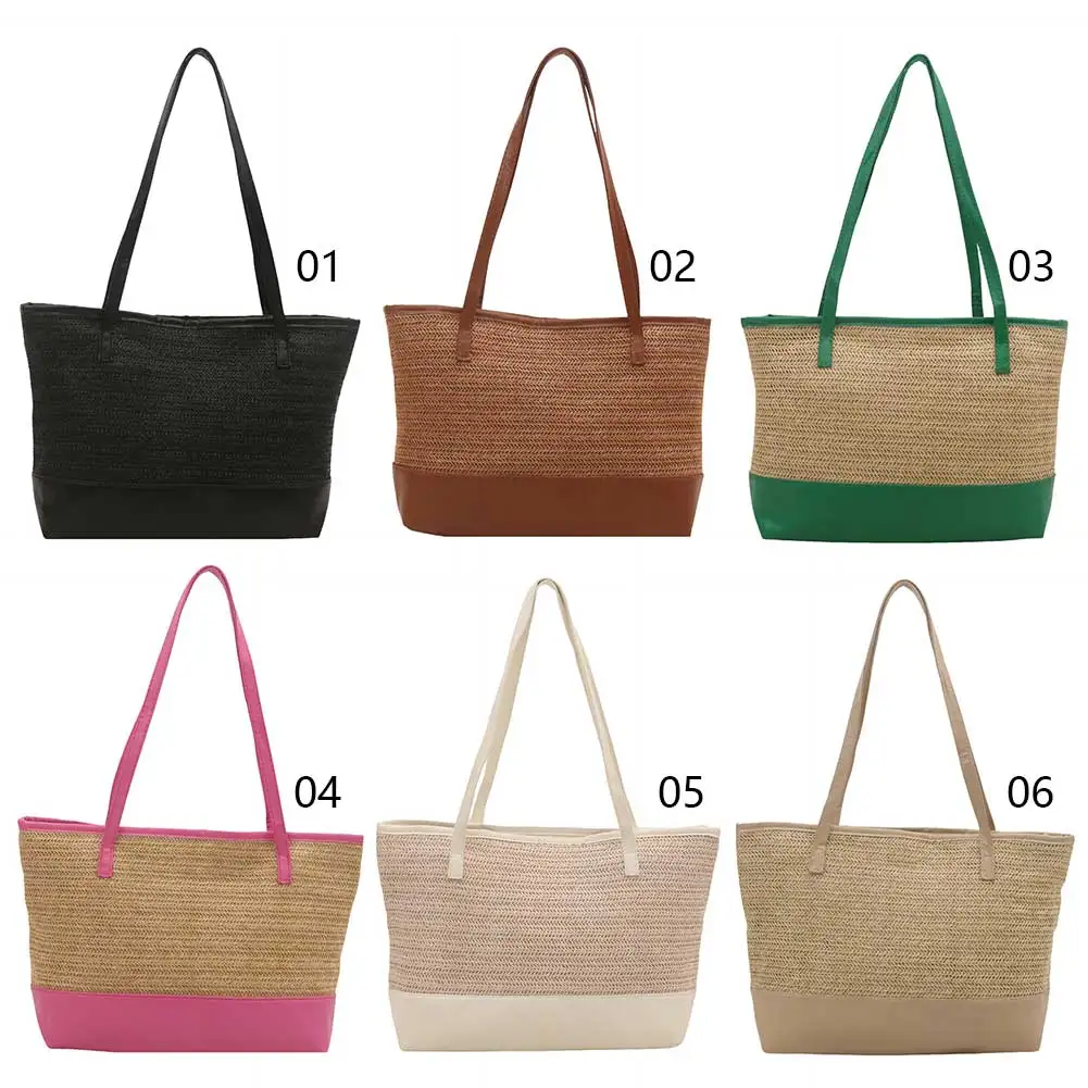 Women Straw Woven Bag Fashion Shoulder Bag Large Capacity Weaving Shoulder Purse Patchwork Handwoven Shopping Bag Vacation Bag Features: