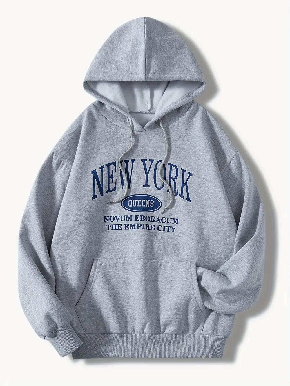 Womens Chic Letter Print Hoodie - Relaxed Fit, Adjustable Drawstring, Soft Comfort - Trendy Casual Streetwear for Everyday Style