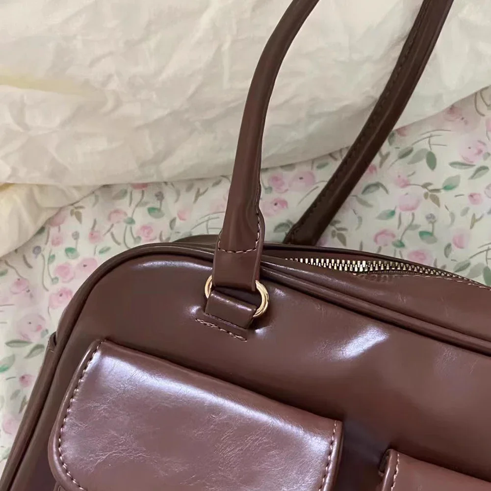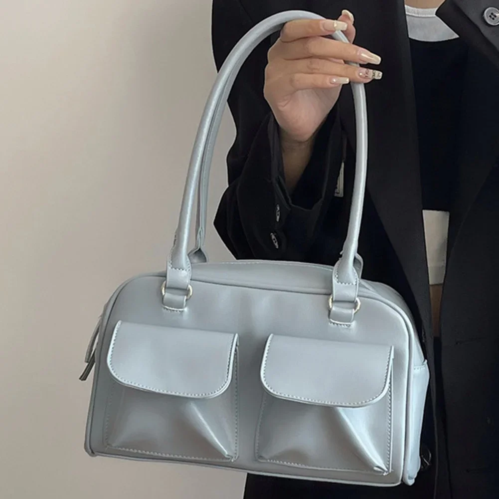 Women's Zipper Shoulder Bag Fashion Top Handle Bag Casual PU Leather Tote Handbag Multi Pocket Underarm Bag Vintage Shopping Bag
