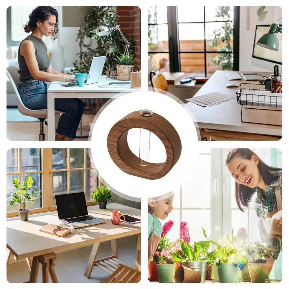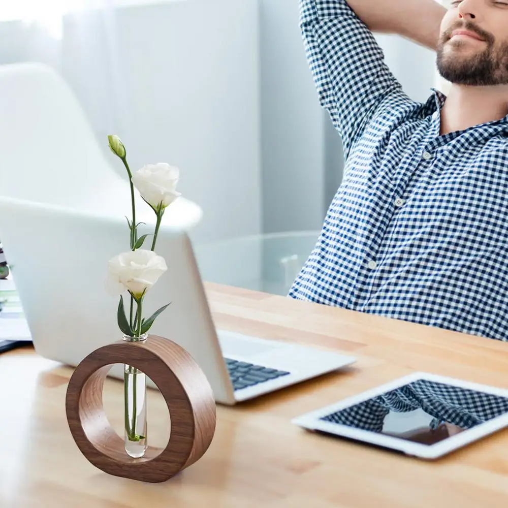 2.Reliable and Sophisticated: Enjoy a timeless beauty with our Wooden Flower Arrangement Vase. With clear glass tubes that are not easily broken and sturdy solid wood brackets, this vase creates a reliable and sophisticated floral display that lasts.