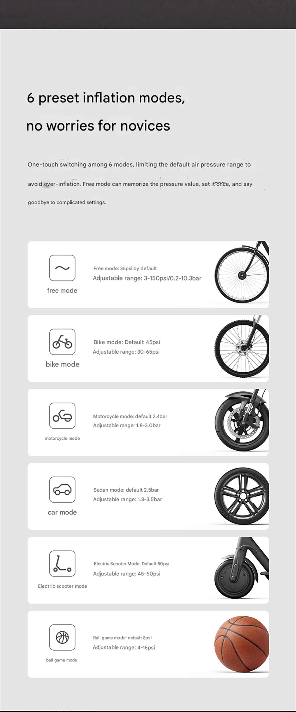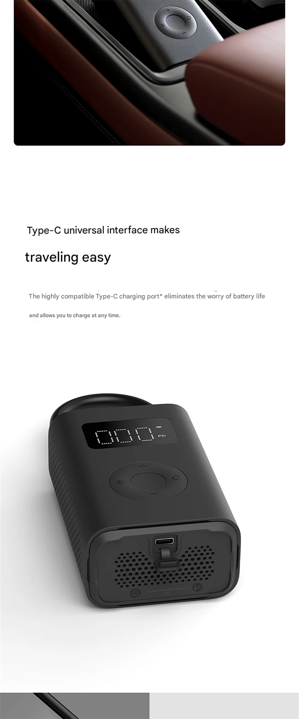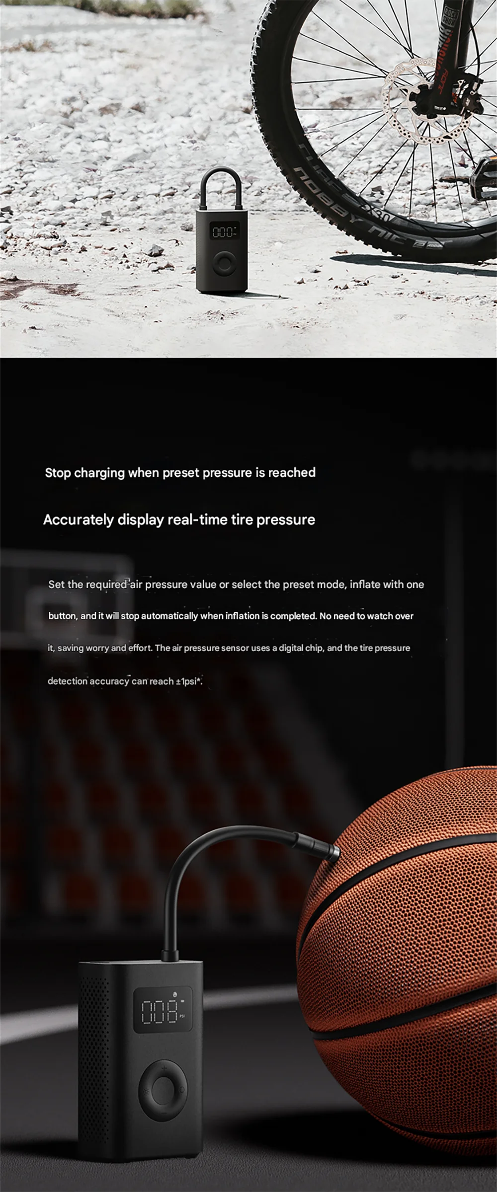 Mi Portable Electric Air Compressor 2 :The 2nd generation of the air-filling little monster with upgraded swiftness.Pre-set pressure stops automatically when the desired pressure is reached.