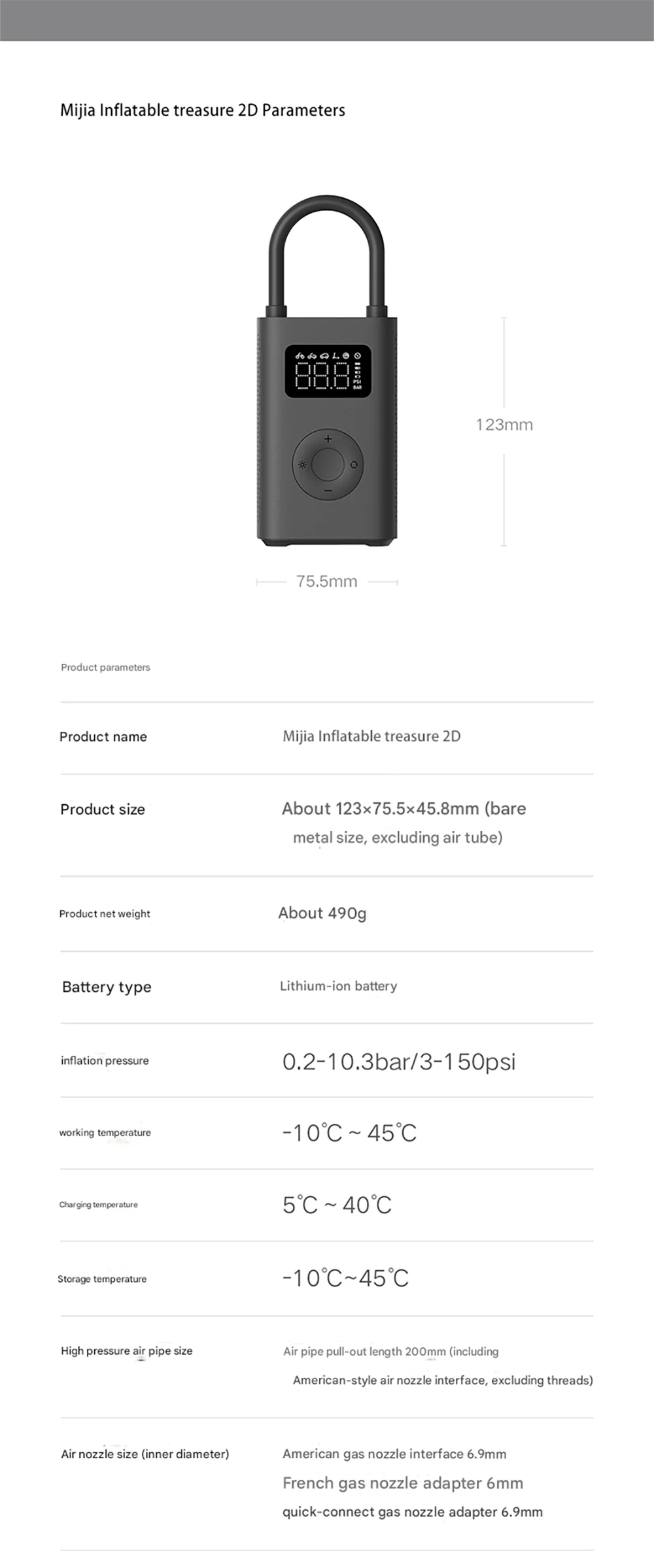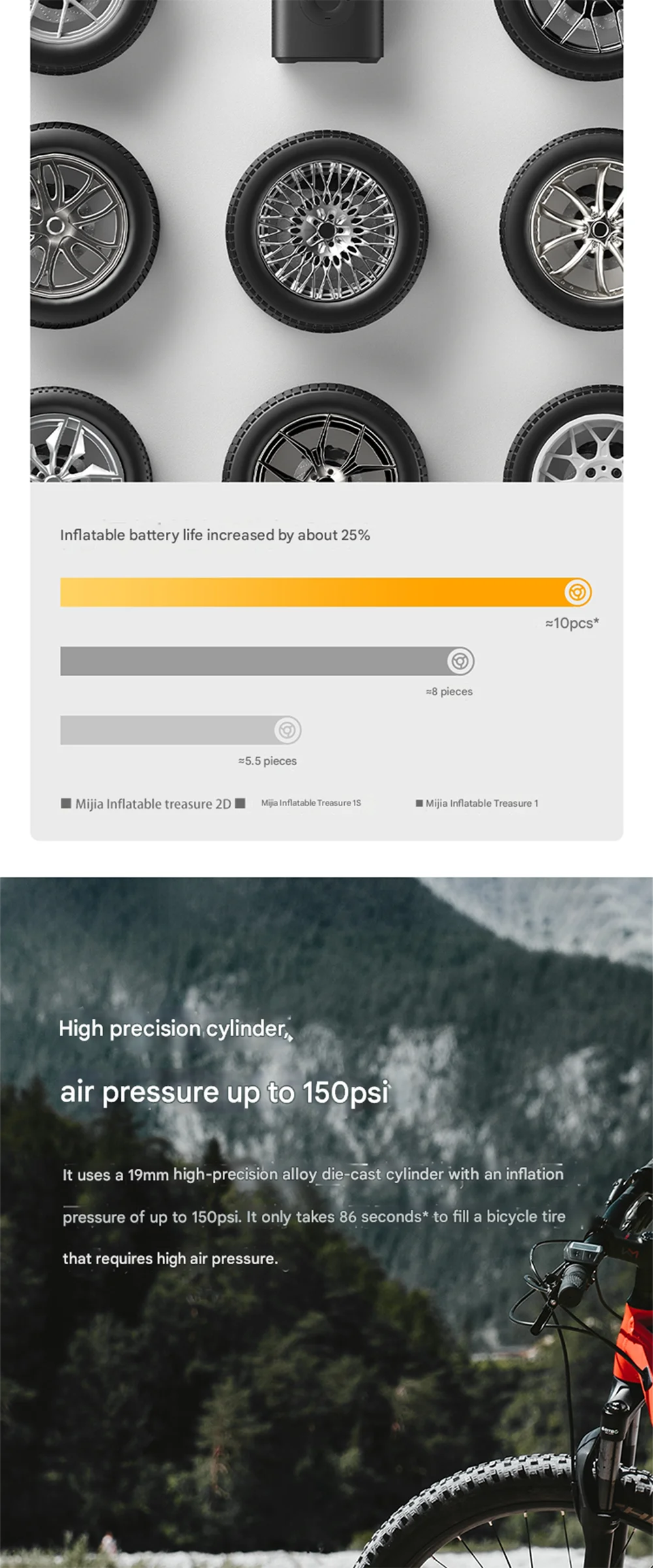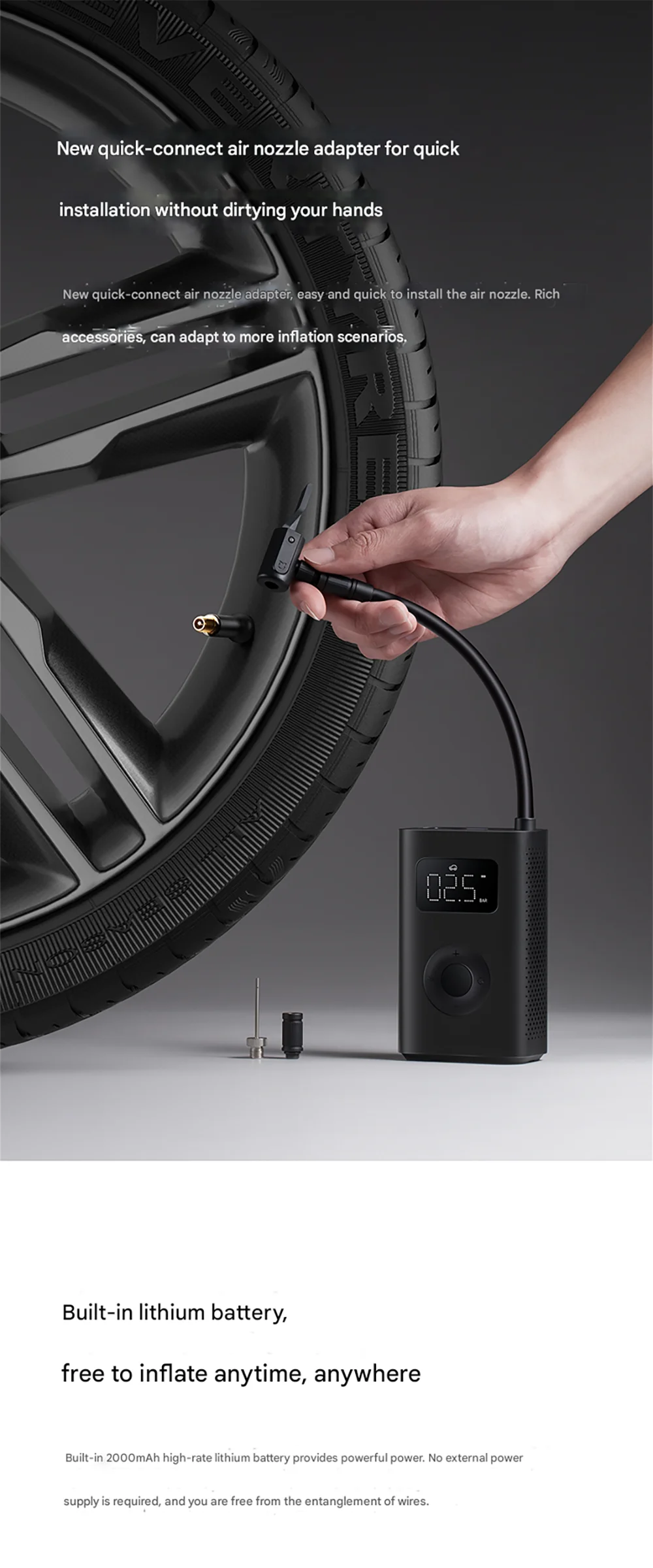 A new generation of air pump with better performance:Compared with the Mi Home Air Pump 1S, this pump has optimized details and improved internal structure. It inflates 25% faster to create a more convenient and efficient air-filling experience.