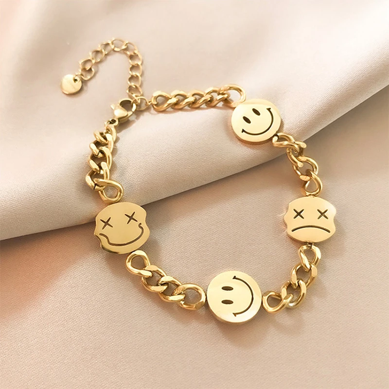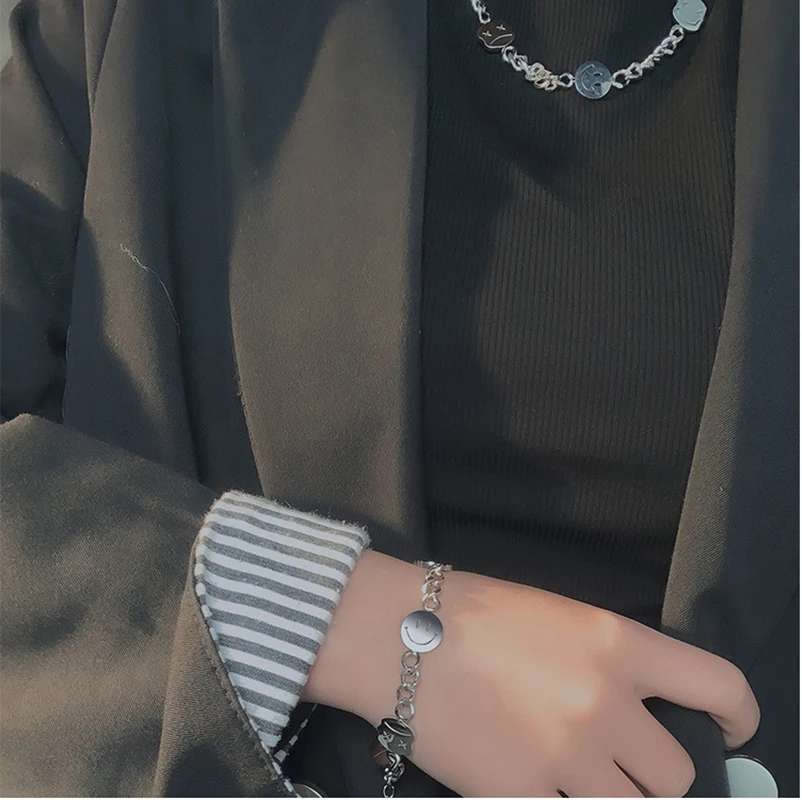 XIYANIKE 316L Stainless Steel New Smile Fashion Jewelry Set for Women Bracelet Necklace Rings 2021 Trend Party Gift Wholesale