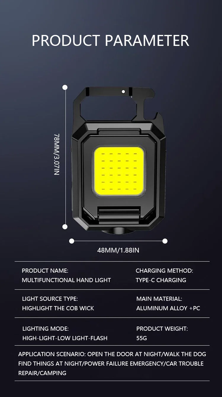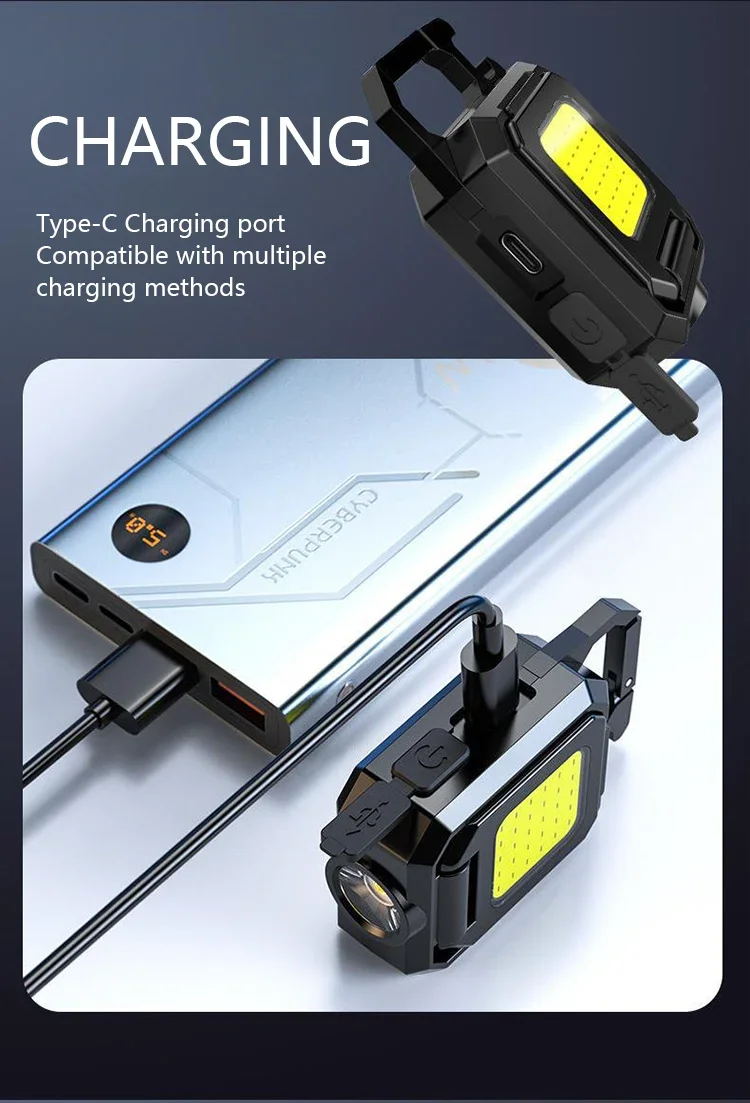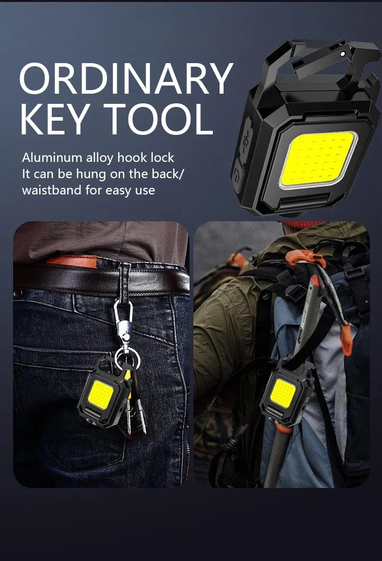 XPE Pocket Work Light 1000LM COB LED Mini Keychain Light USB Rechargeable Flashlight IPX4 Waterproof for Outdoor Camping Hiking