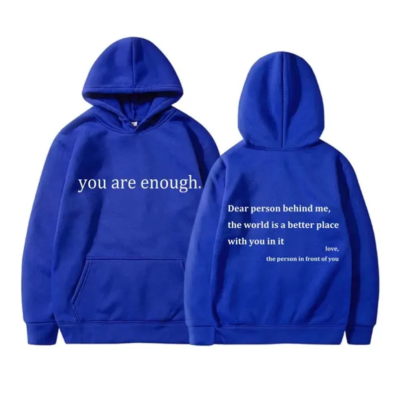 YOU ARE ENOUGH Print Hoodies Autumn Casual Sportswear Plus Fleece Winter Tops Pullover Men's Hoodies Streetwear Sweatshirts